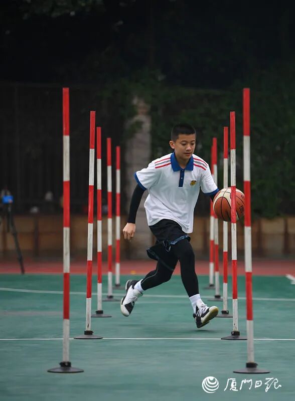 去年体育中考中,考生进行篮球项目考试。(本报记者 林铭鸿 摄)