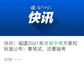 今年9月,福建省教育厅已公布《福建省初中毕业升学体育与健康考试实施方案(试行)》(下简称《方案》),不仅再次明确了从2021年开始,体育中考总分从30分增加到40分的分数变化,变化的考试方案和更高的评分要求让不少家长开始为孩子报班学习,提前准备。 (戳上方图片可直达原文)