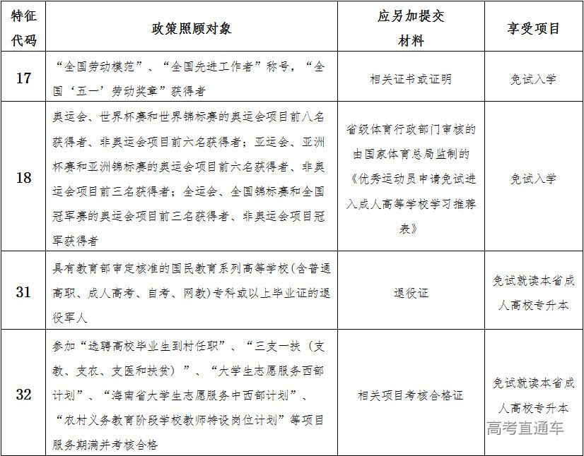 申请照顾政策照顾免试入学、加分(年满25周岁以上照顾加分除外)的考生,除上传本人身份证和相应的起点学历证书外,还应上传以下相应免试入学、加分材料的扫描照片,同时在报名时间内携带原件和复印件到所选的报名点进行现场资格审查,最后以报名点现场资格审查通过为准。