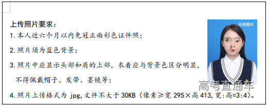 (1)上传本人近期电子相片、本人身份证图片,本人证件照是考生参加考试接受身份验证的重要依据,提交非本人照片或使用不符合要求的照片会影响考生考试和学籍注册,由此造成的后果由考生自行承担。