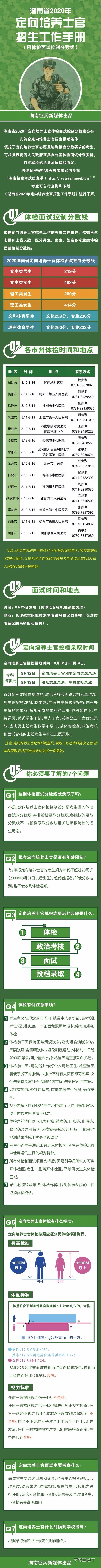 湖南省2020年定向培养士官招生工作手册(附体检面试控制分数线)