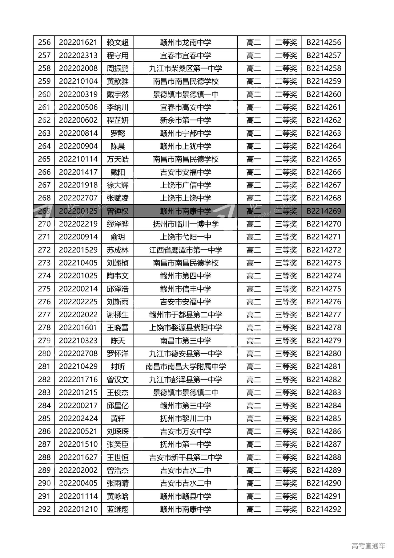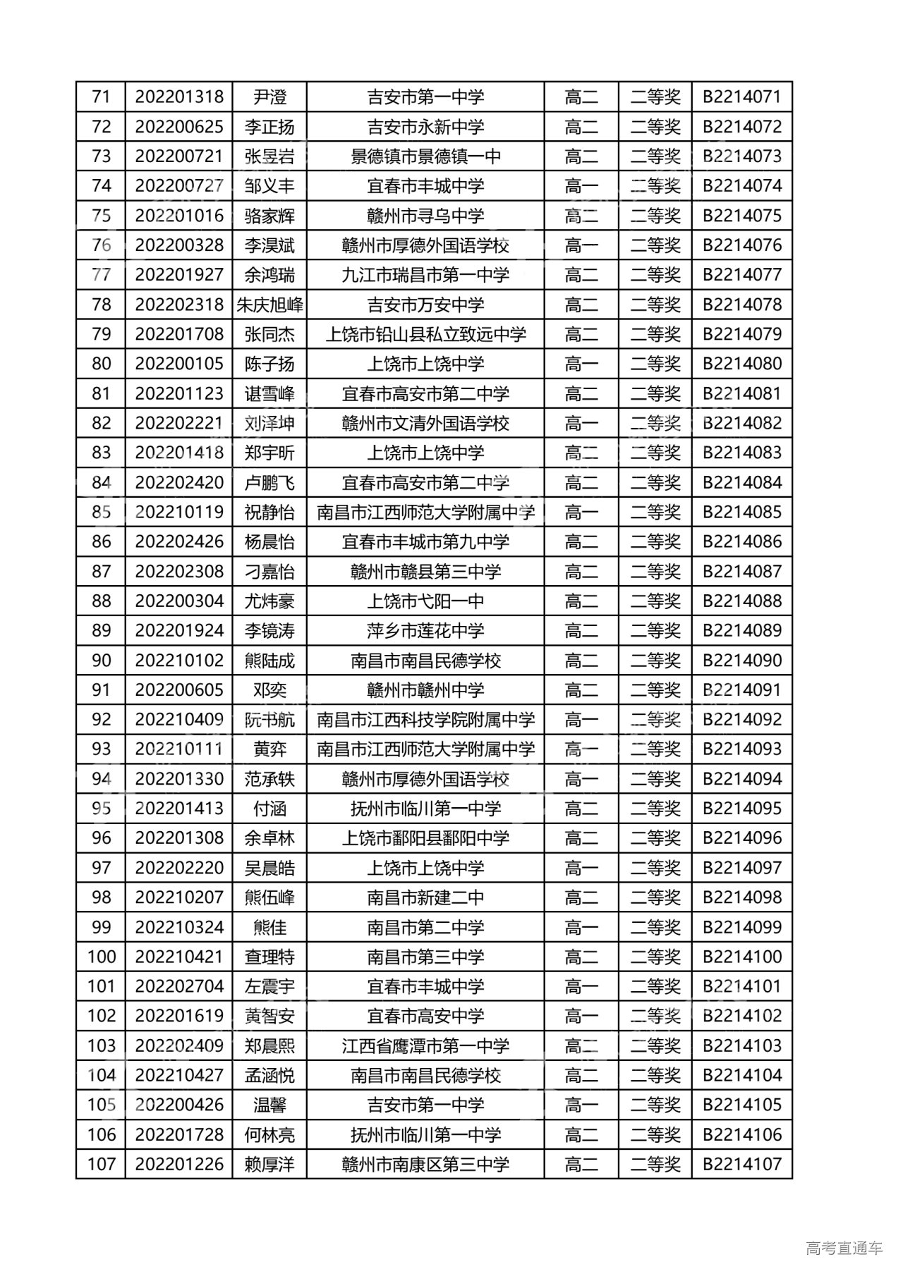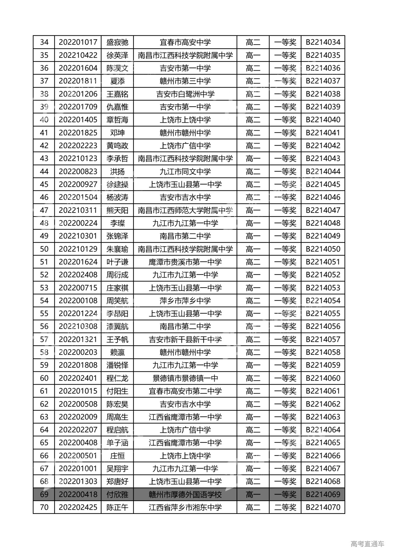 江西省2022年全国中学生生物联赛获奖名单