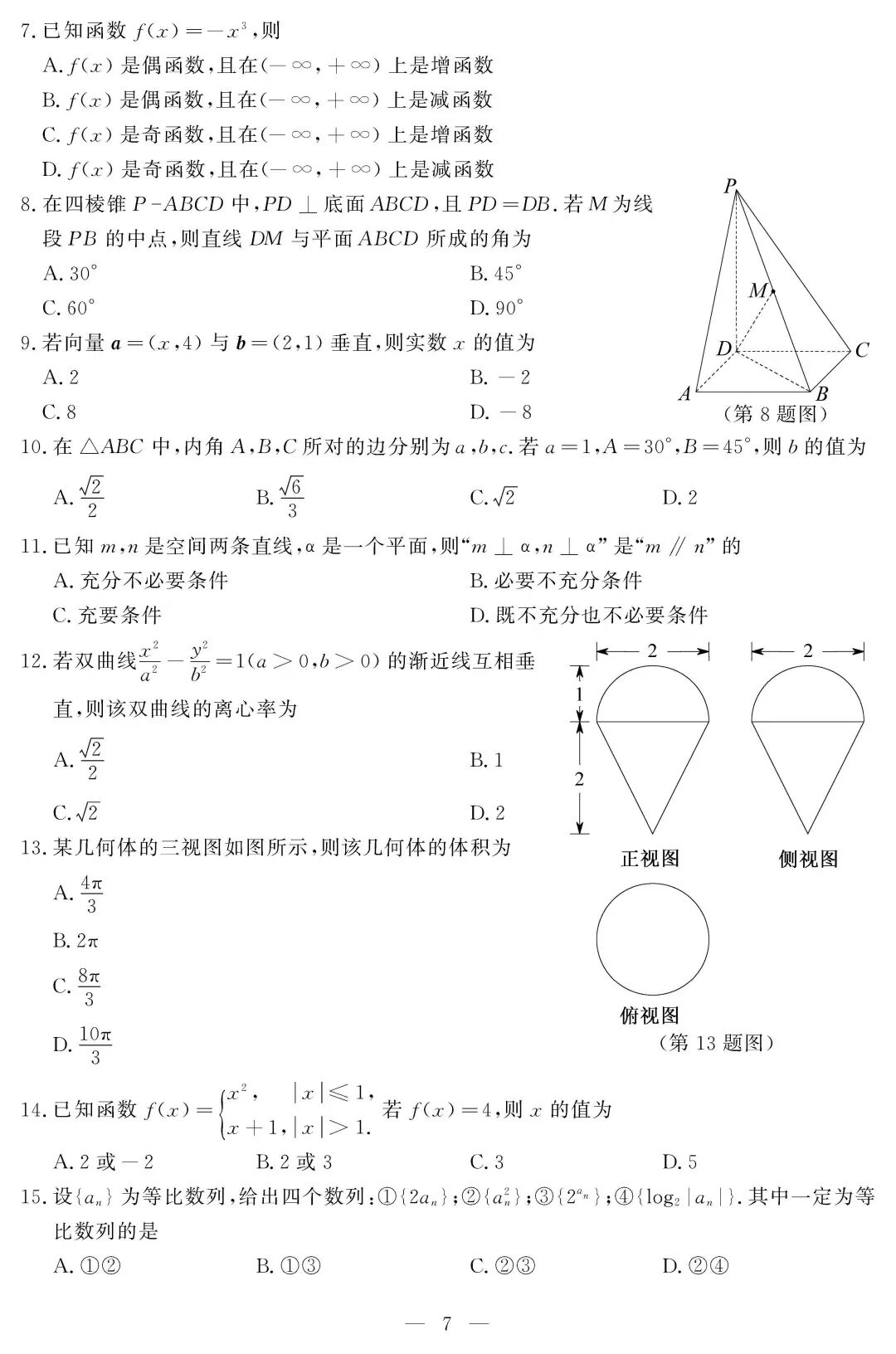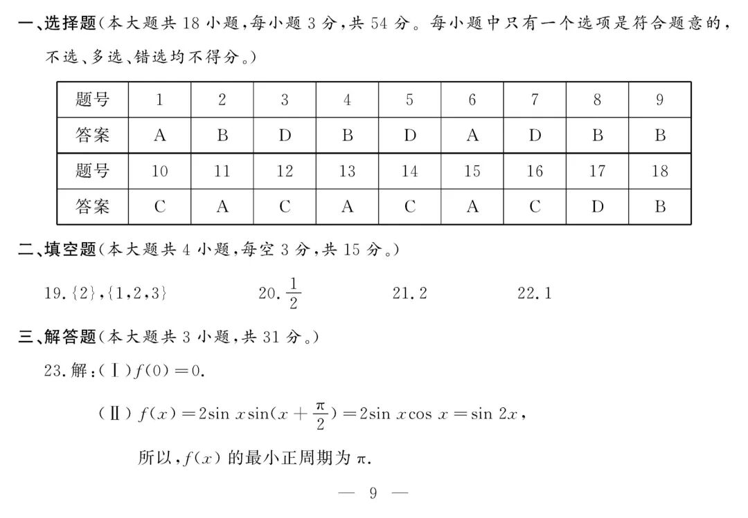 数 学 试 题 参 考 答 案