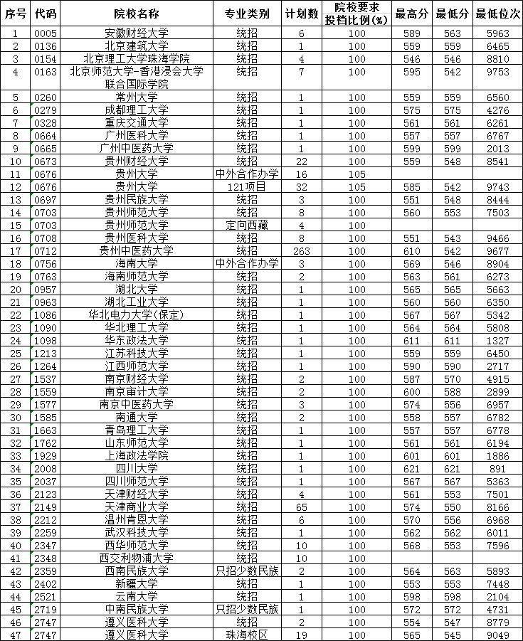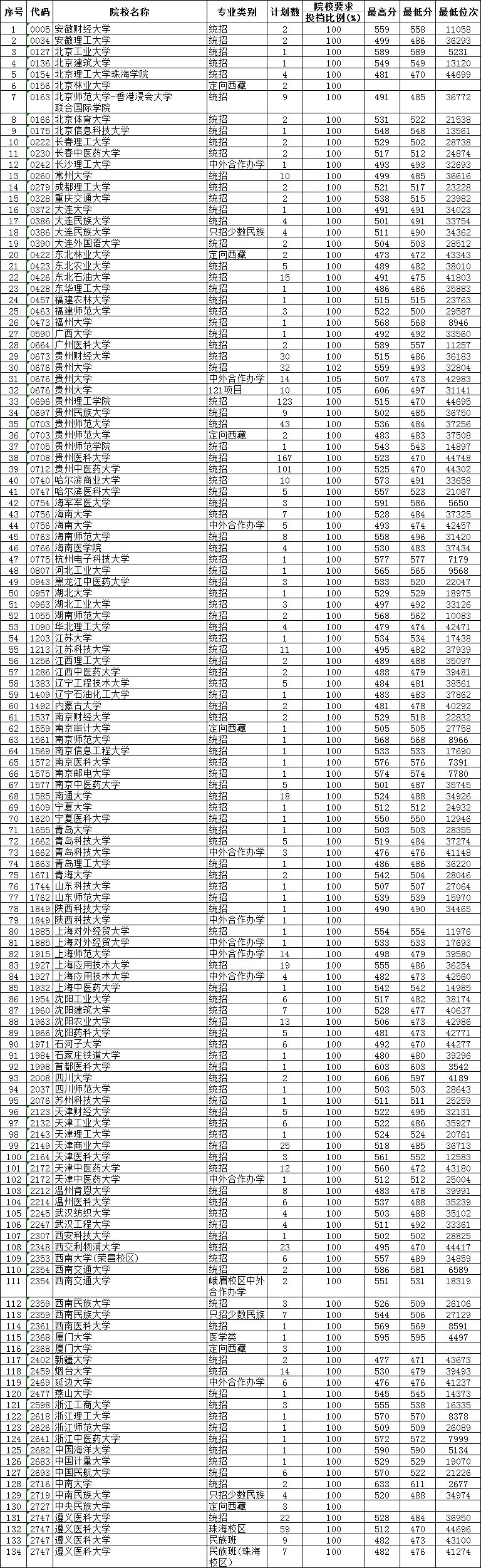 贵州省2019年高考第一批本科补报志愿投档情况(文史、理工)