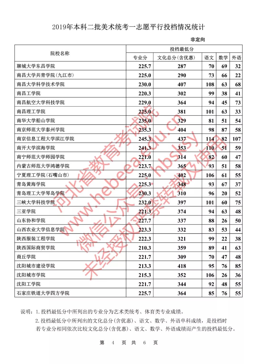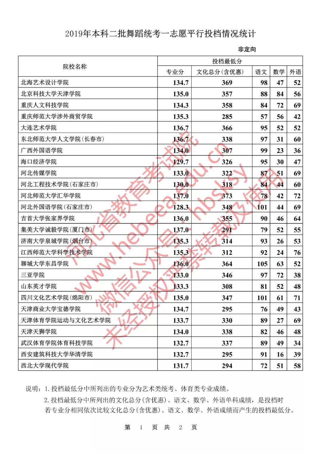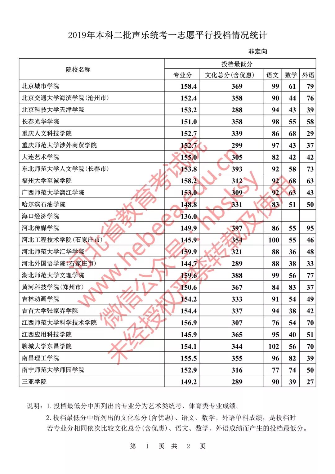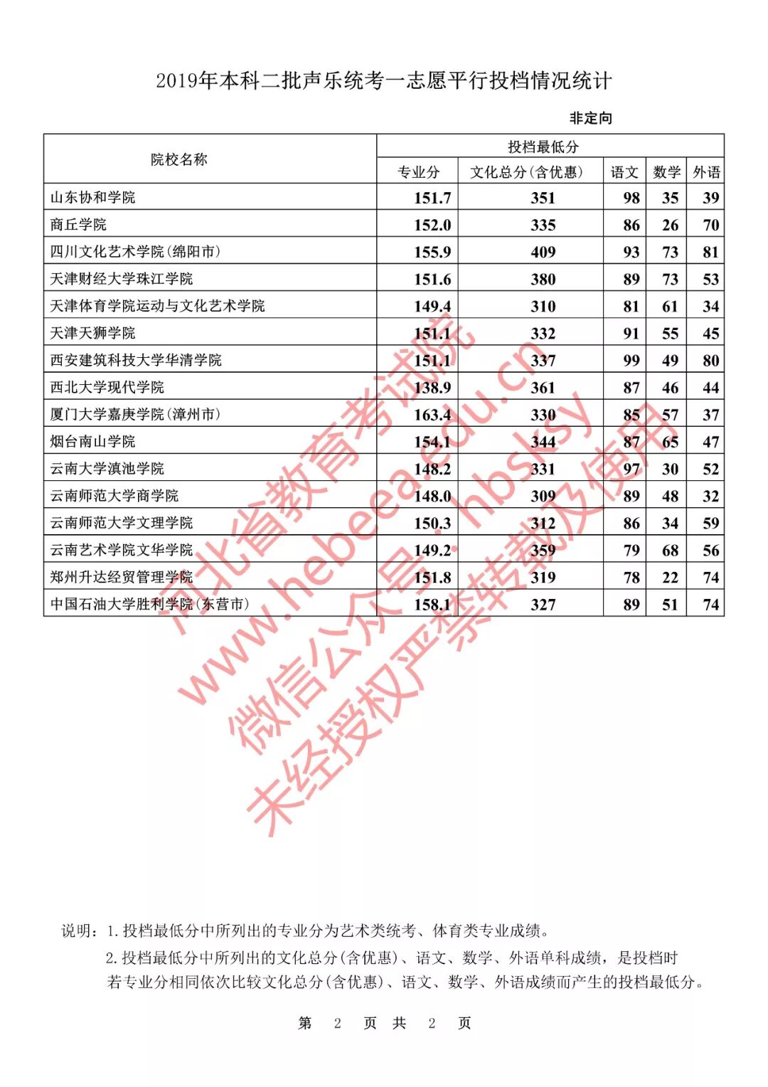 2.投档最低分中所列出的文化总分(含优惠)、语文、数学、外语单科成绩,是投档时若专业分相同依次比较文化总分(含优惠)、语文、数学、外语成绩而产生的投档最低分。