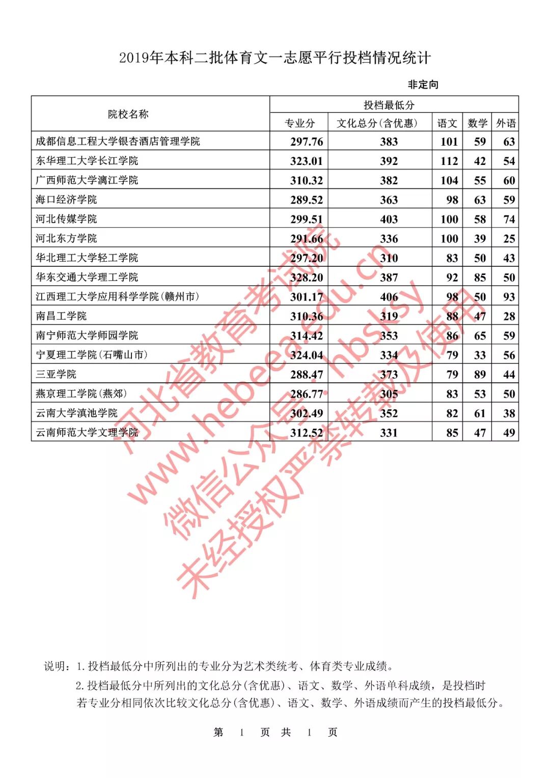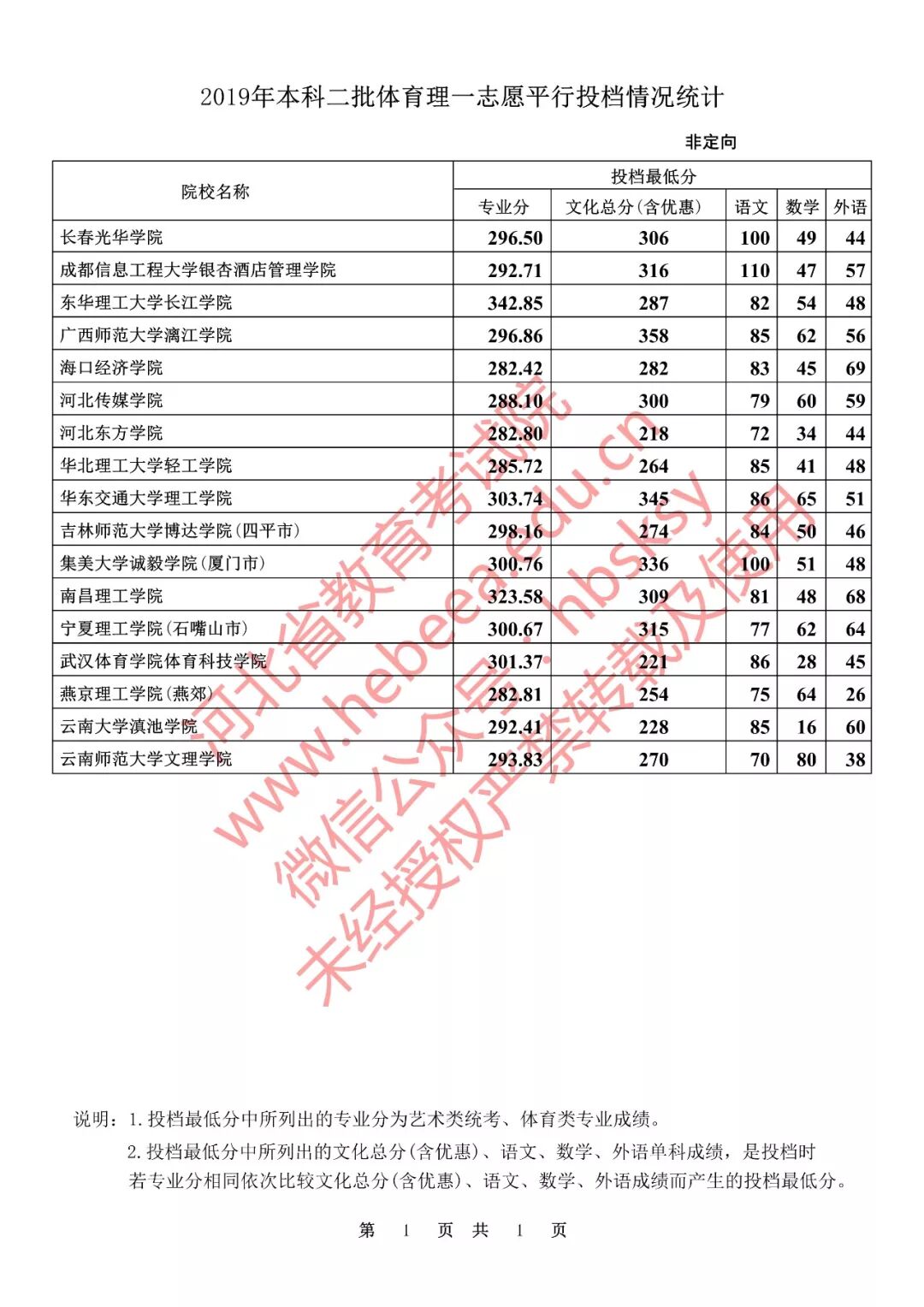 1.投档最低分中所列出的专业分为艺术类统考、体育类专业成绩。