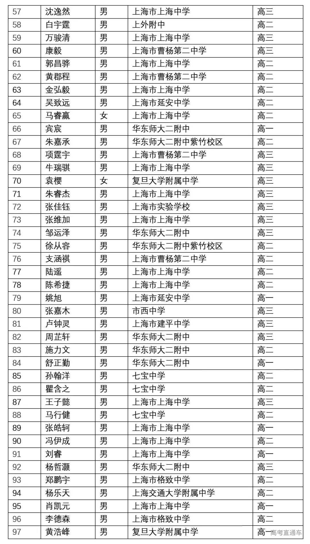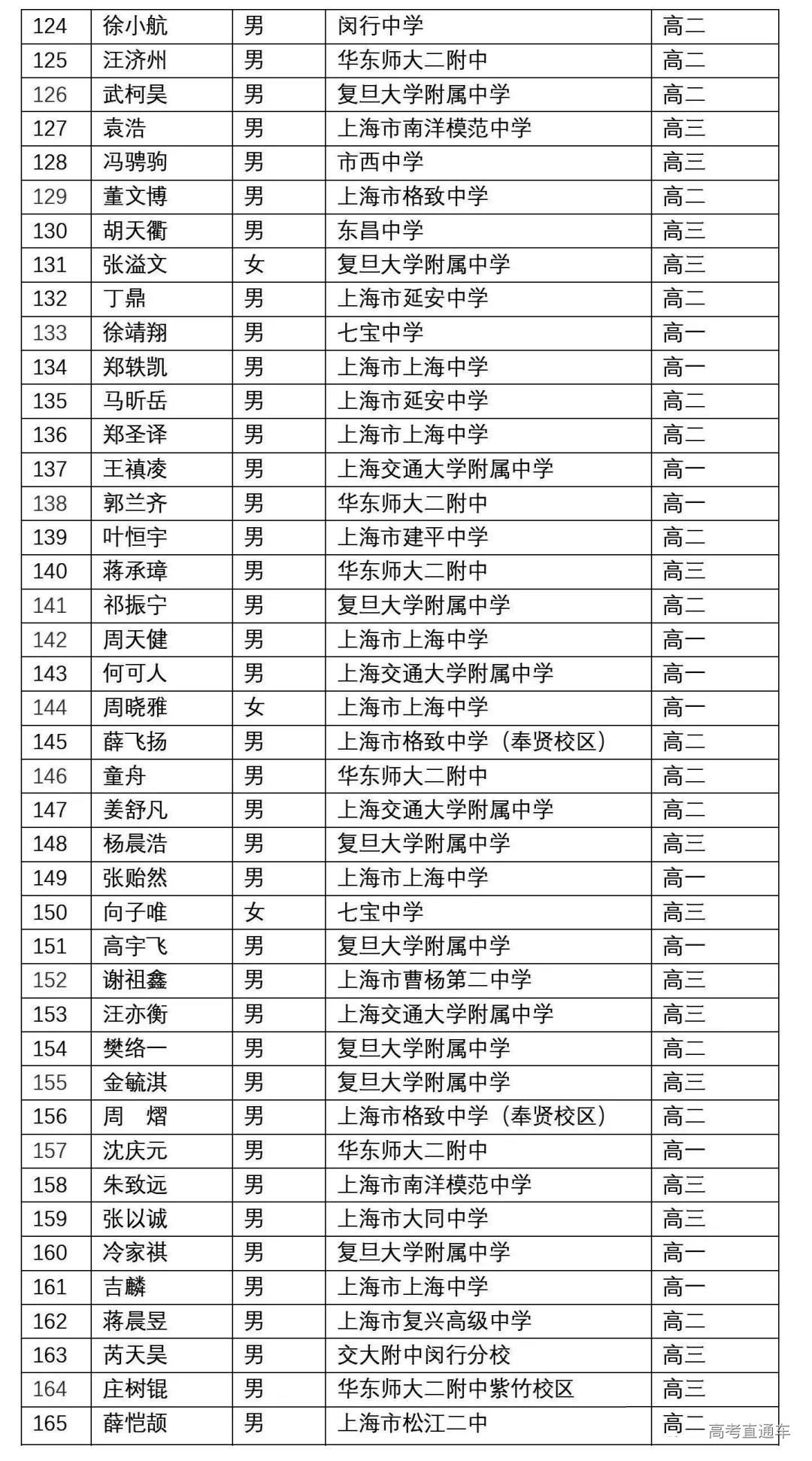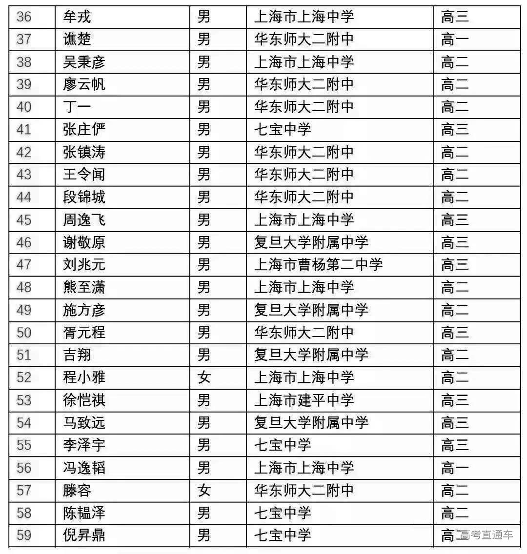 上海市2019年第36届全国中学生物理竞赛省队名单
