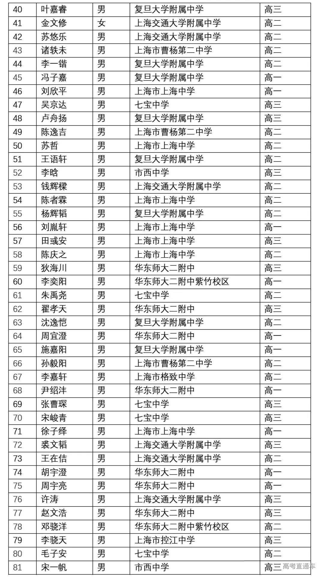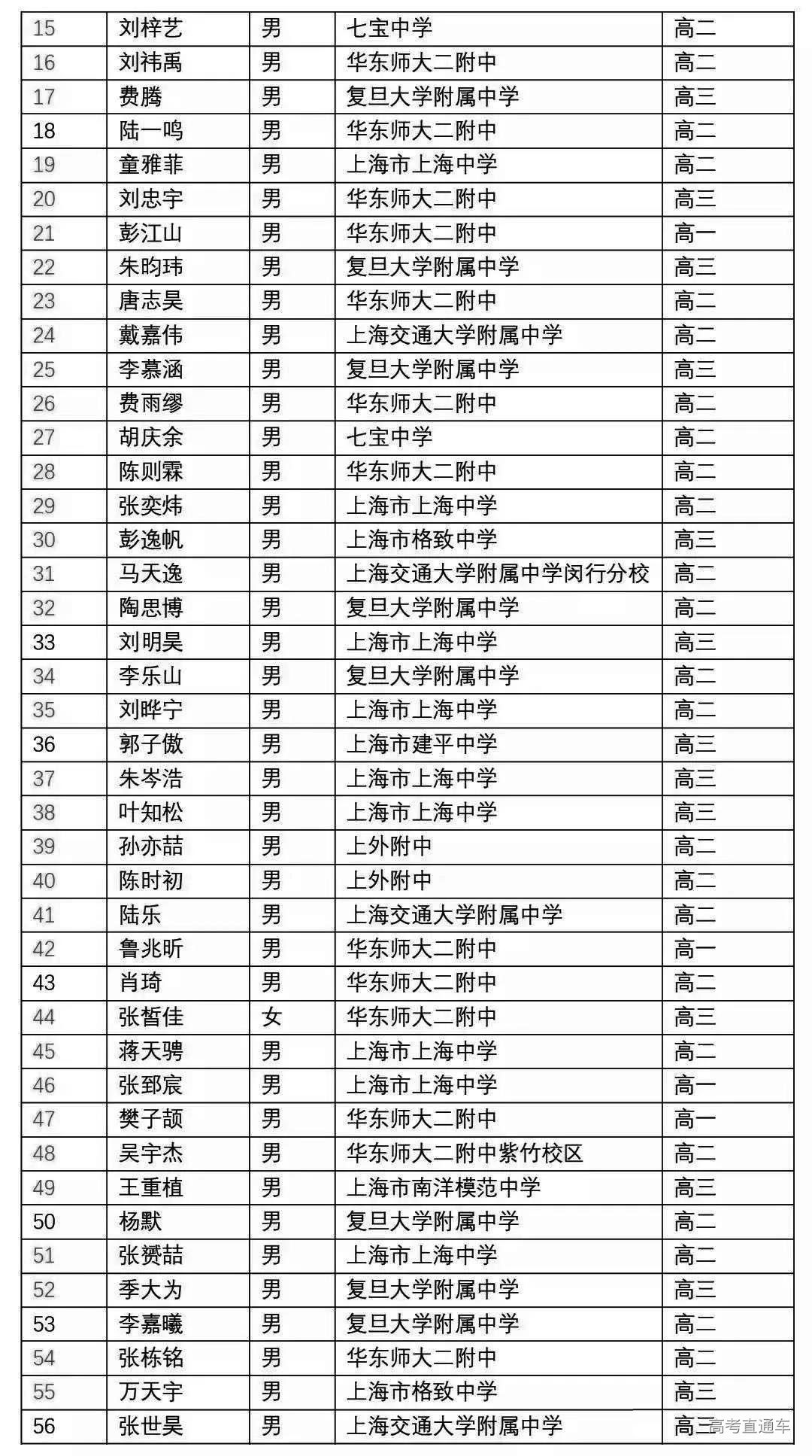 上海市2019年第36届全国中学生物理竞赛复赛省队名单