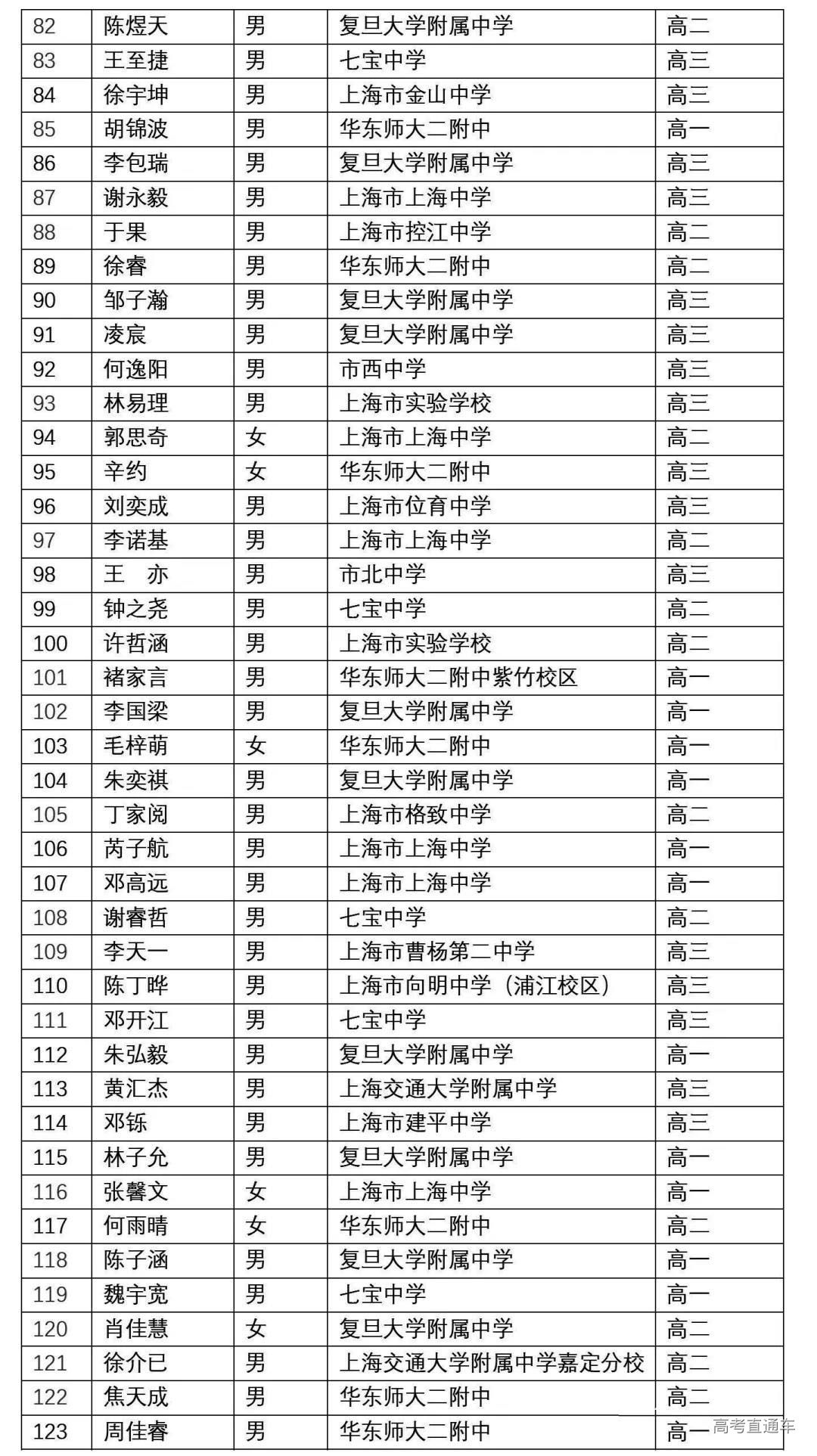 上海市2019年第36届全国中学生物理竞赛复赛省一获奖名单