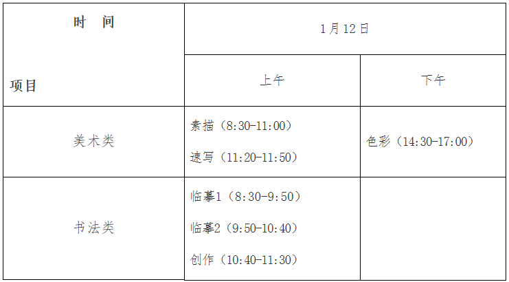 2.参加书法专业考试的考生自带毛笔、墨汁、画毡、黑色签字笔等用品。