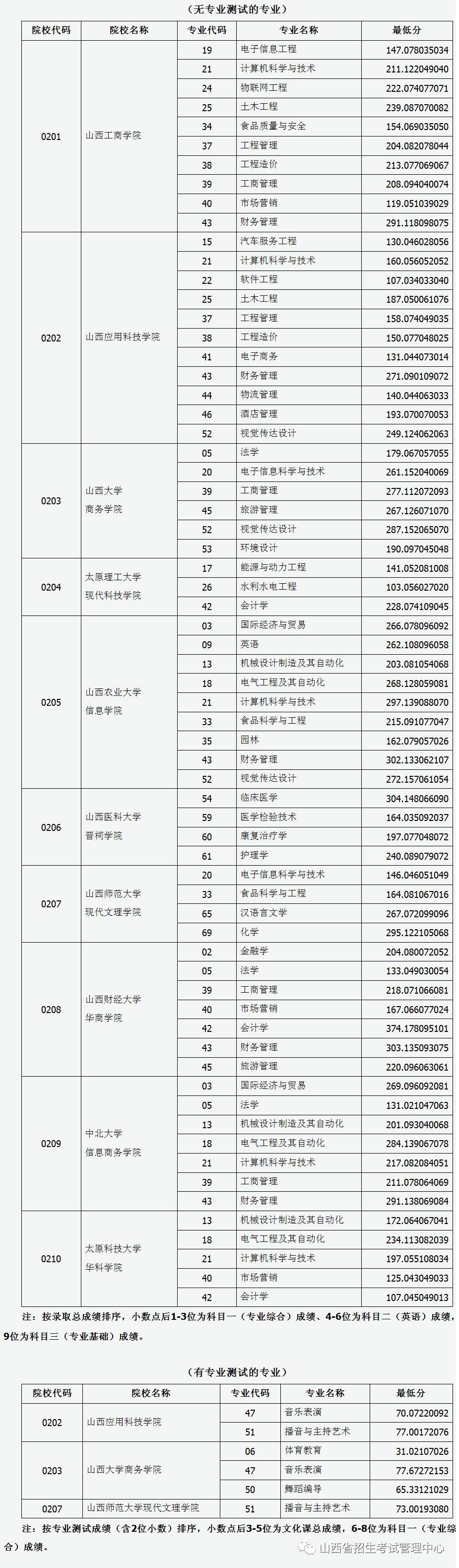 山西省2019年专升本录取第二批本科院校投档线