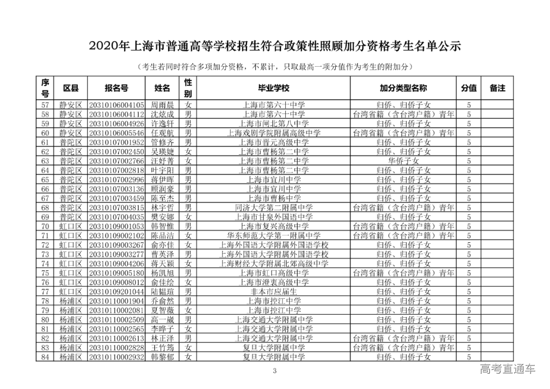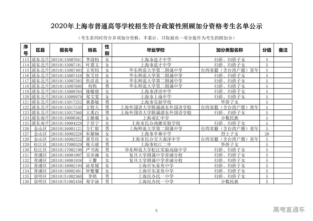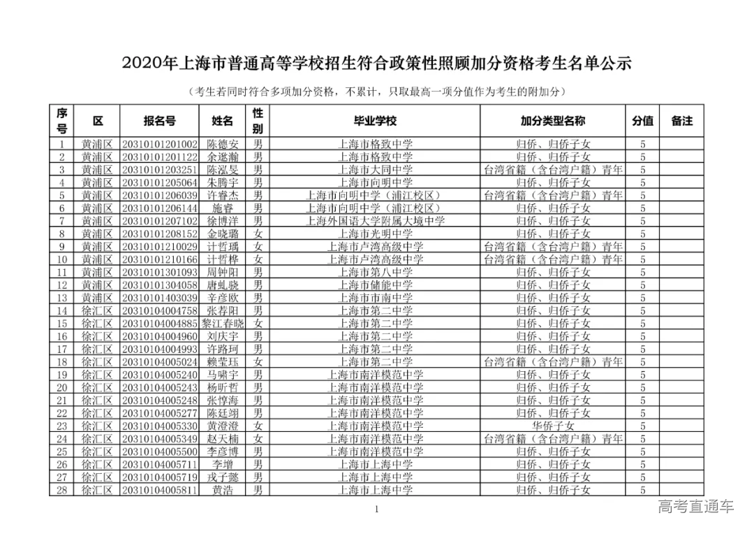 喜讯!2020上海高考加分名单及保送生名单公示