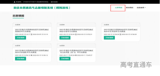 第一步,点击“志愿填报”,选择相应的可填报志愿卡,点击进入填报志愿。
