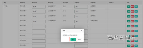 温馨提示:删除志愿1后志愿2会自动上移成为志愿1,后面的志愿会挨个向前平移,以此类推。
