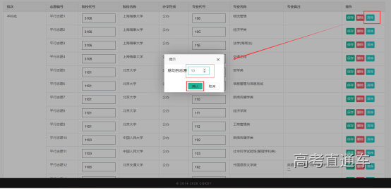 移动平行志愿1移动到志愿10,点击确认,如下图