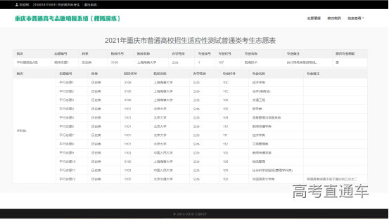 ◆3.本次适应性测试招生计划为模拟计划,仅供本次模拟志愿填报使用,与正式招生计划无关。考生可通过“重庆市2021年普通统一高考志愿填报辅助系统”进行模拟计划查询,输入相应的院校和专业代号进行志愿填报。(正式在渝招生计划将在2021年统一高考后公布)