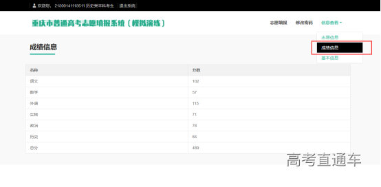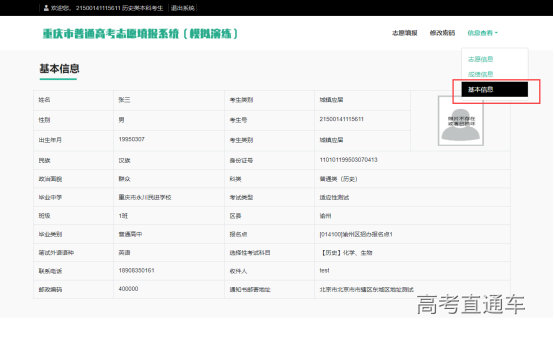 提供查询的考生个人信息包含:志愿信息、成绩信息、基本信息。
