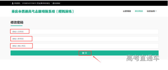 如果考生们感觉之前设置的密码不方便记忆,本系统提供了修改密码的功能,