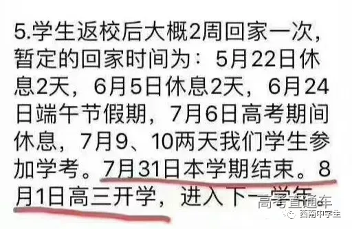 有同学表示,他们学校已经公布了高二的暑假放假安排:7月31日本学期结束,8月1日高三开学……