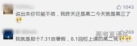 这意味着高二学生要无缝衔接,高三7.31放假回家,大家笑着说明天见?因此引发了许多神吐槽: