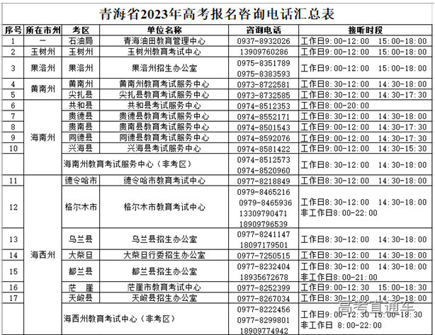 (三)请考生密切关注青海省教育招生考试院官网(www.qhjyks.com)、微信公众号“青海省教育招生考试”以及所在考区招办微信公众号、QQ群等,以便及时获取高考报名相关重要信息。