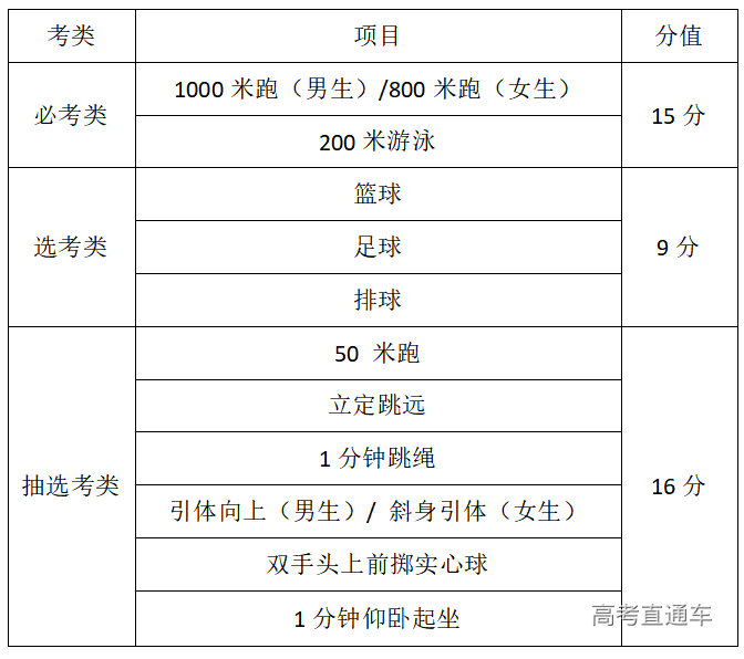 考试内容调整→将体育与健康基本知识考试调整为日常检测,其原有分值全部调整至运动技能测试;此前“三大球”(篮球、足球、排球)采取“抽考”模式,调整后改为“选考”,考生可从三个项目中自主选择1项参加考试。