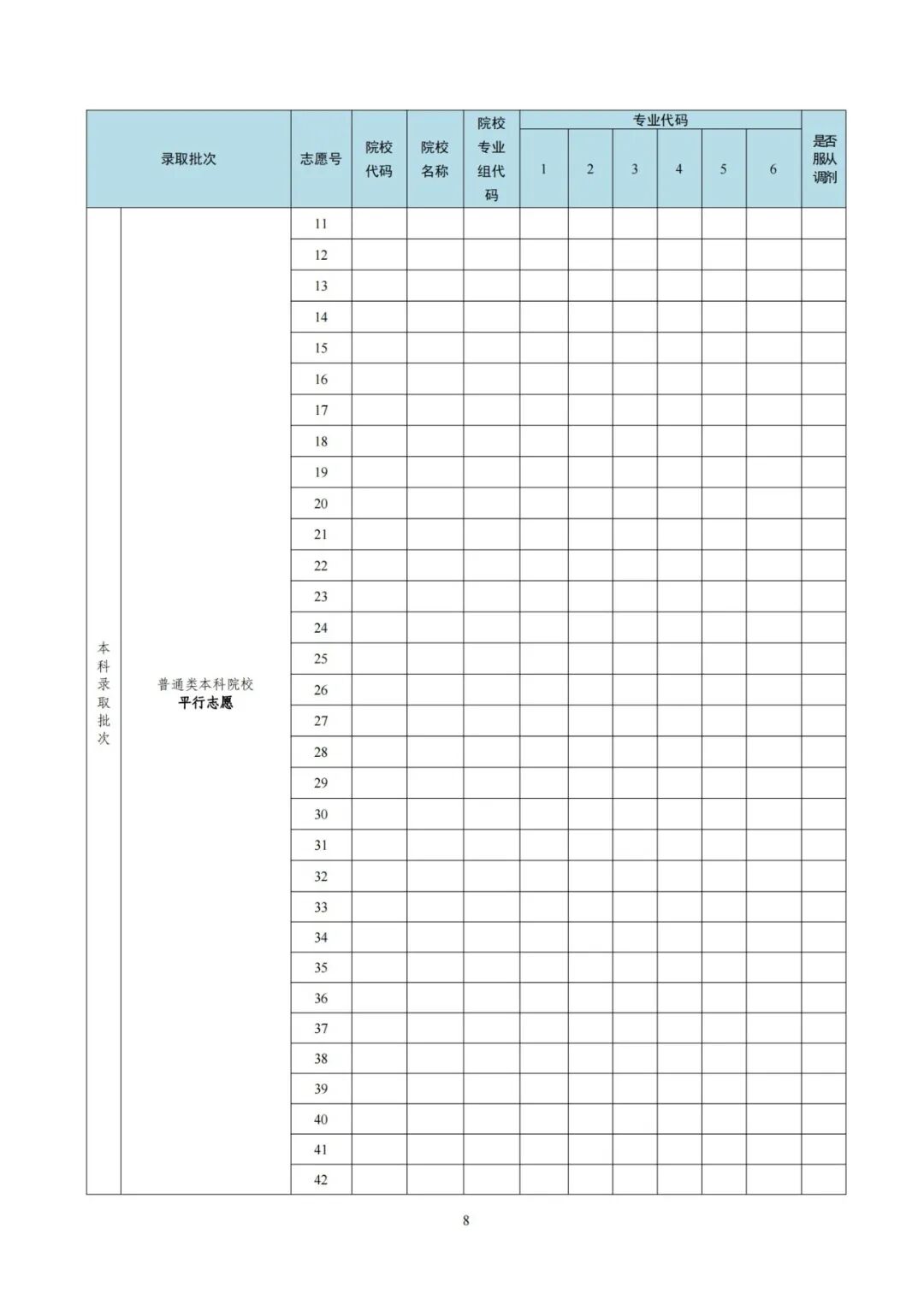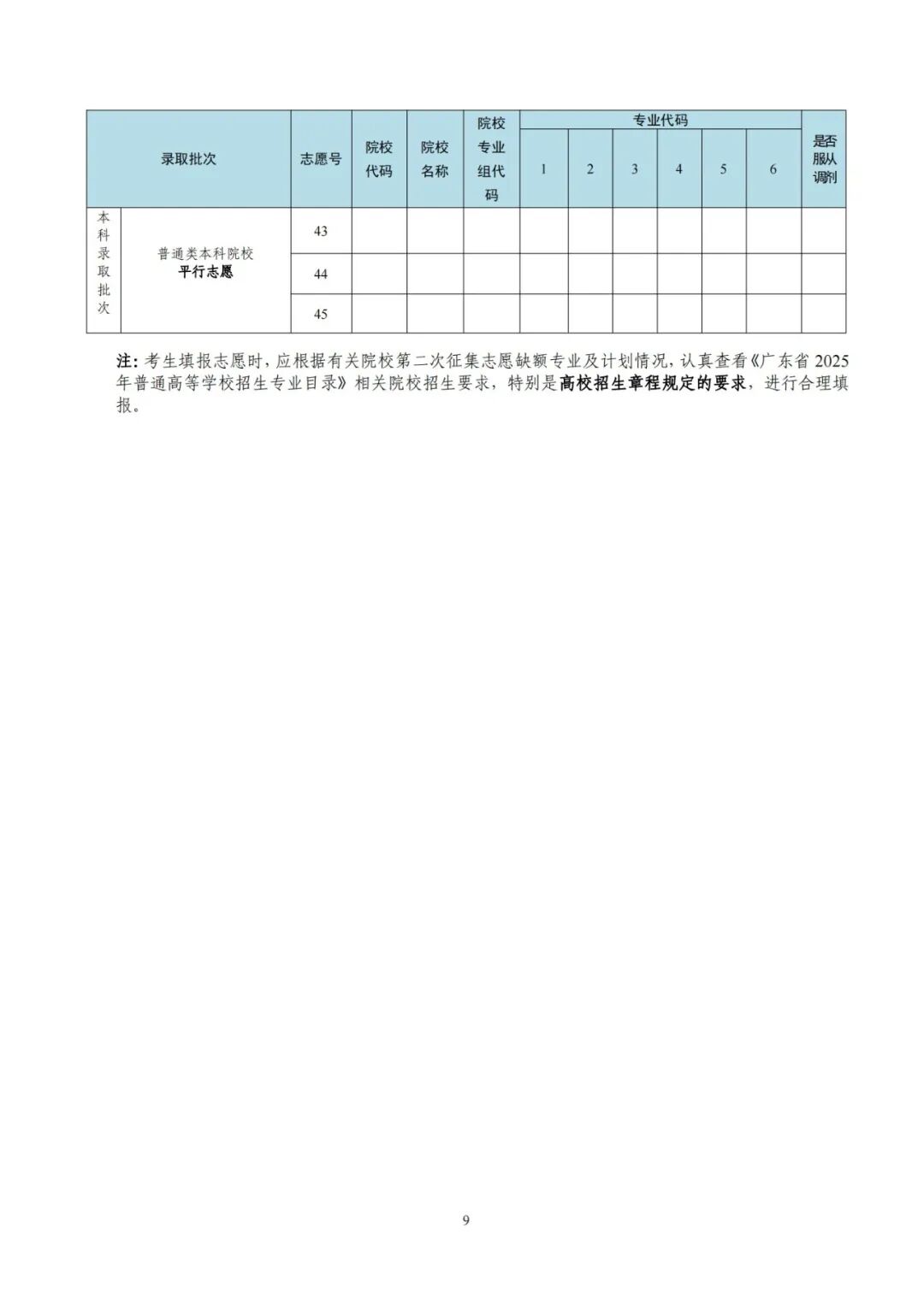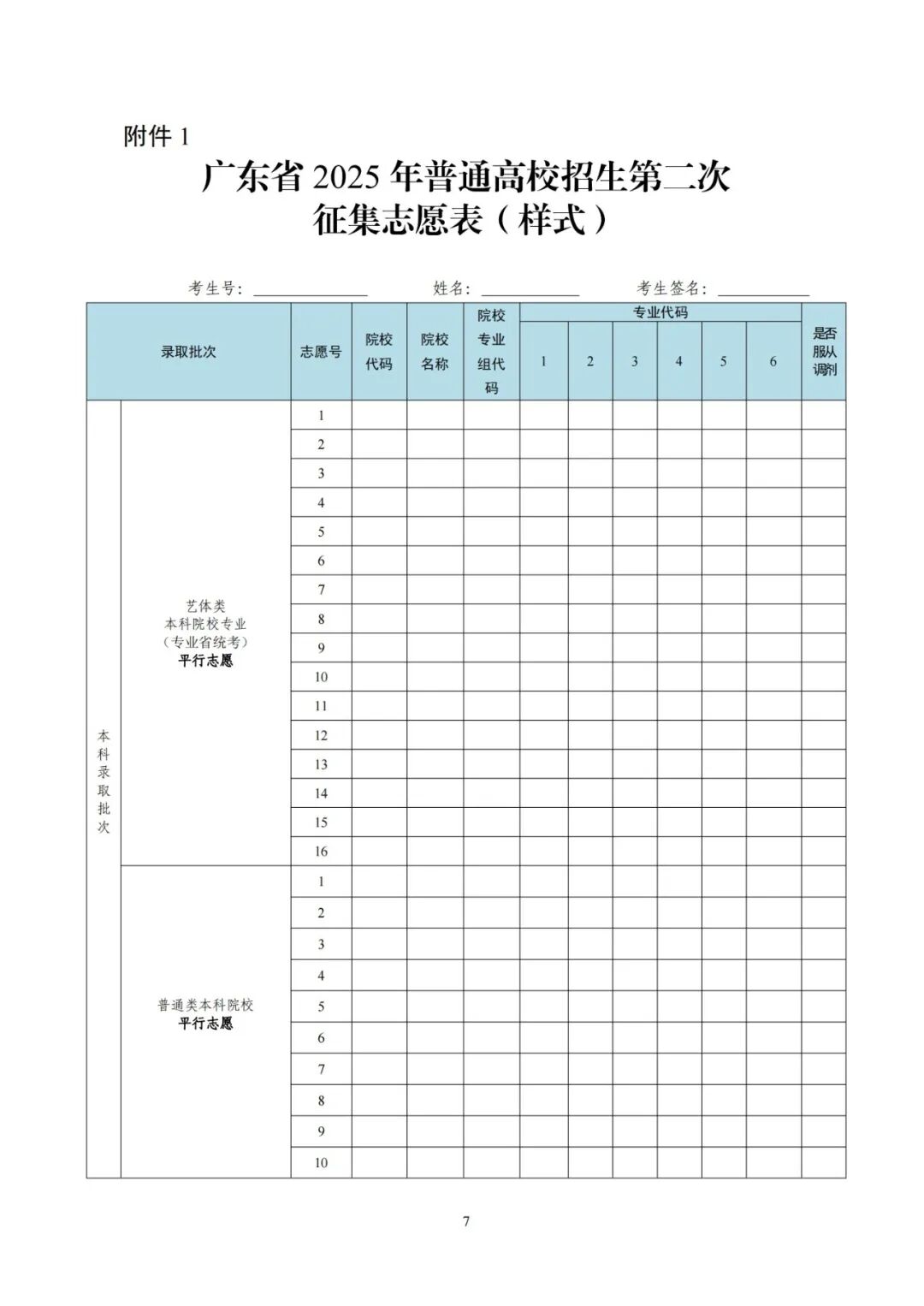广东省2025年普通高校招生第二次征集志愿表(样式)