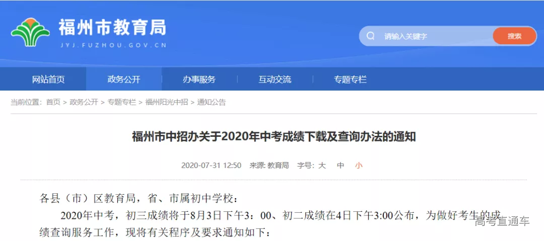 福州市中招办要求,在中考查询成绩期间(8月3日下午和4日全天),各初中学校及县(市)区中招办要以生为本,安排有关教师和工作人员值班。学校要切实负起责任,是自己职责范围内能解决的问题,要勇于负责,及时解决,不能把矛盾和问题向上一交了之;对不能解决的问题,要及时如实地向县(市)区中招办或市中招办反映。