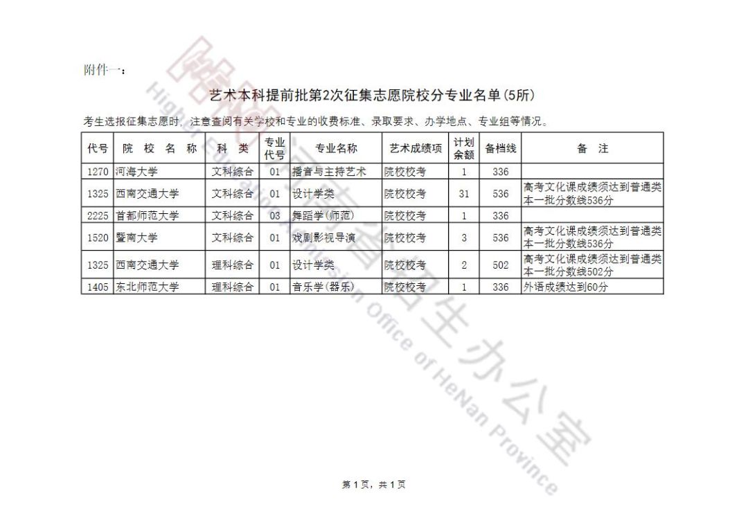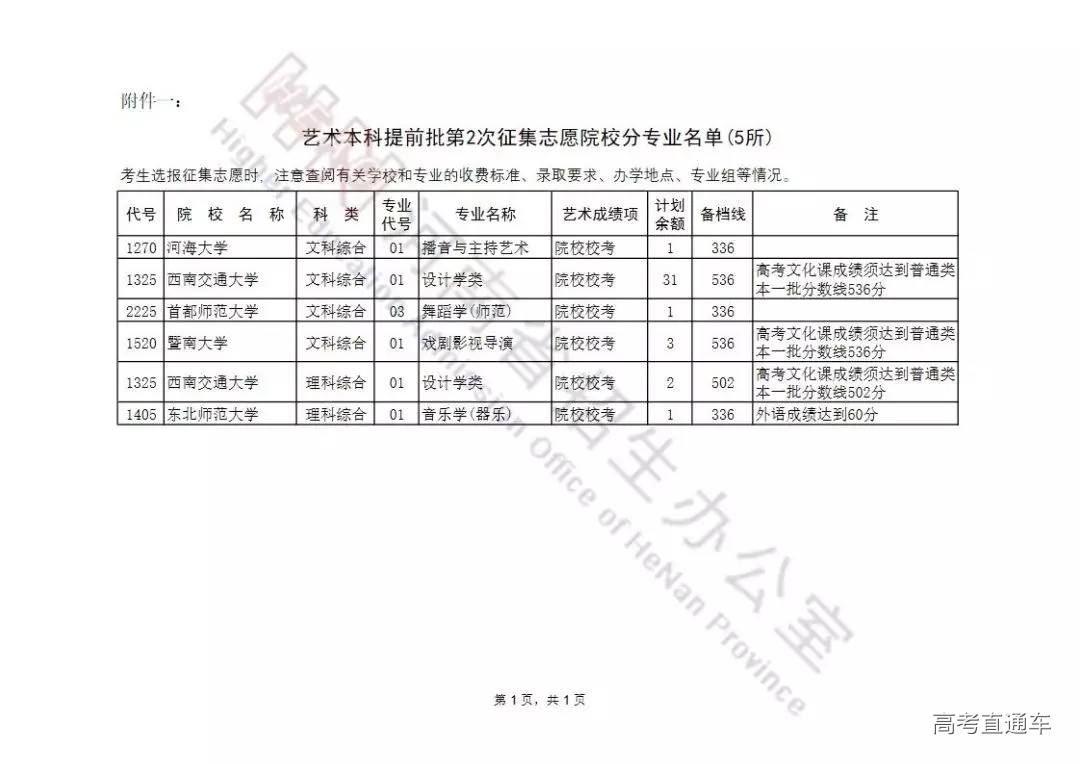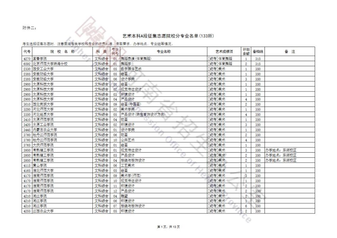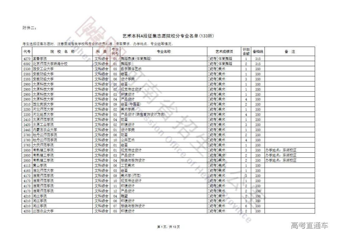 艺术本科提前批及A段按程序投档录取后,部分院校招生计划有余额,为完成招生计划,决定面向符合条件的考生征集志愿。现将有关事宜通知如下: