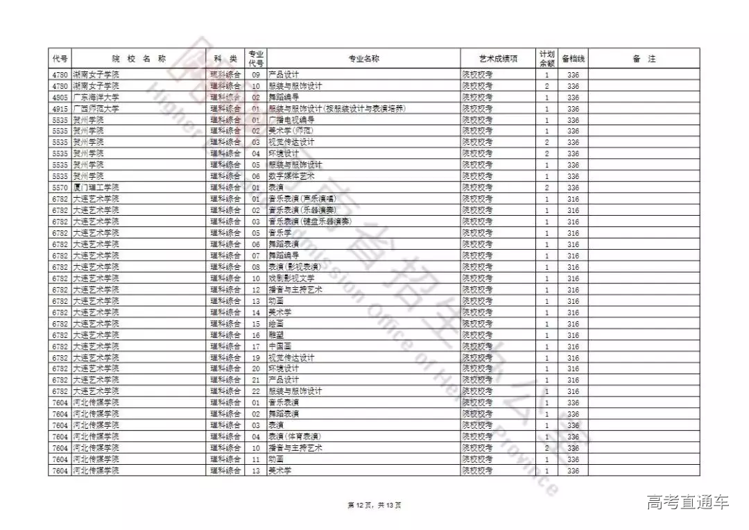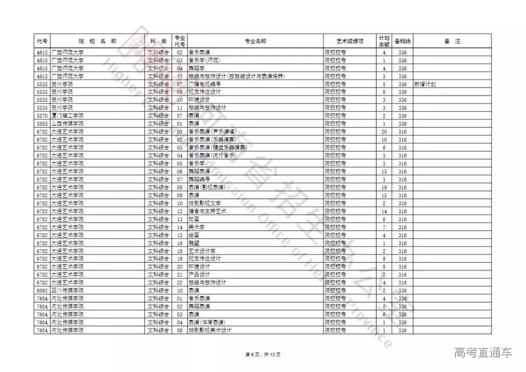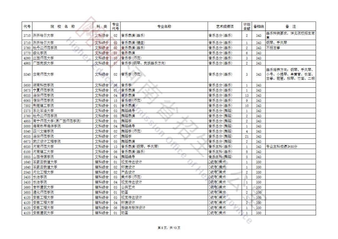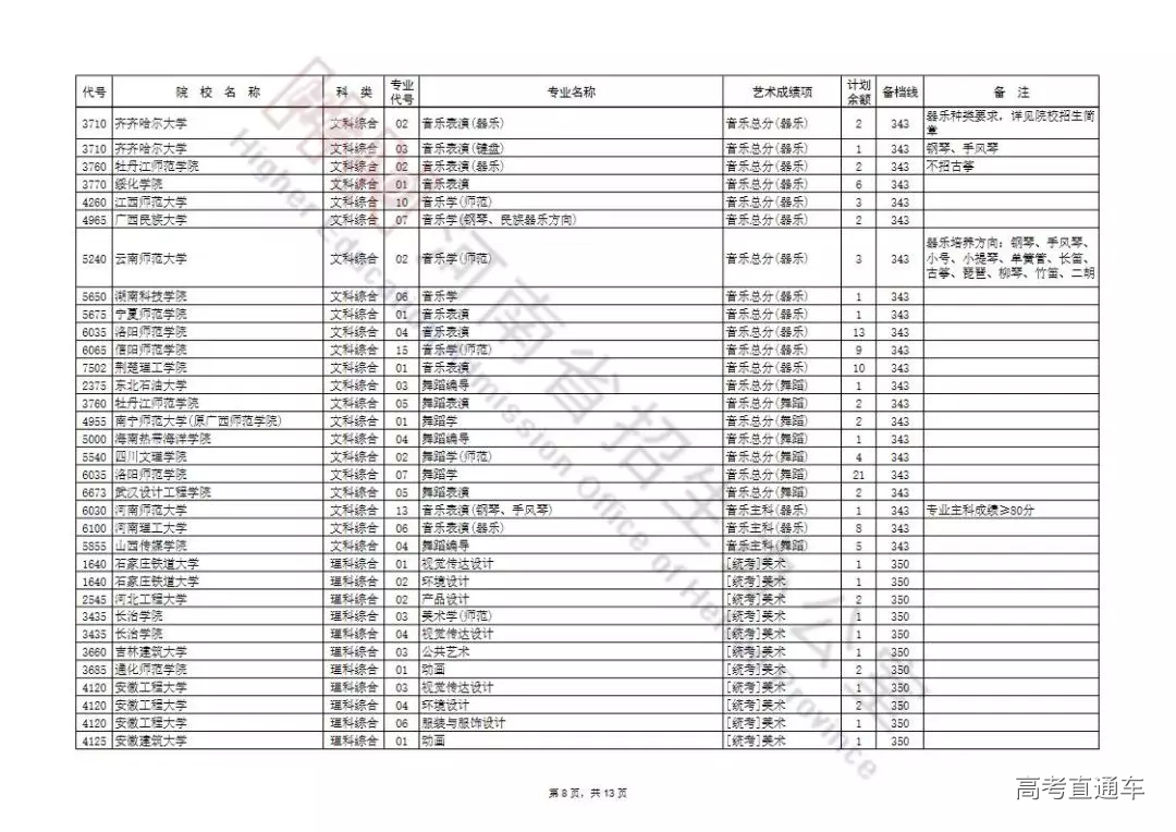 艺术本科提前批及A段按程序投档录取后,部分院校招生计划有余额,为完成招生计划,决定面向符合条件的考生征集志愿。现将有关事宜通知如下:
