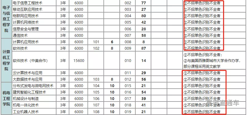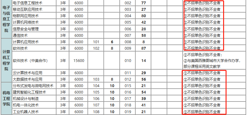 3、不能准确识别红、黄、绿、兰、紫各种颜色中任何一种颜色的导线、按键、信号灯、几何图形者不能录取的专业:除同轻度色觉异常、色觉异常II度两类列出专业外,还包括经济学类、管理科学与工程类、工商管理类、公共管理类、农业经济管理类、图书档案学类各专业。不能准确在显示器上识别红、黄、绿、兰、紫各颜色中任何一种颜色的数码、字母者不能录取到计算机科学与技术等专业。