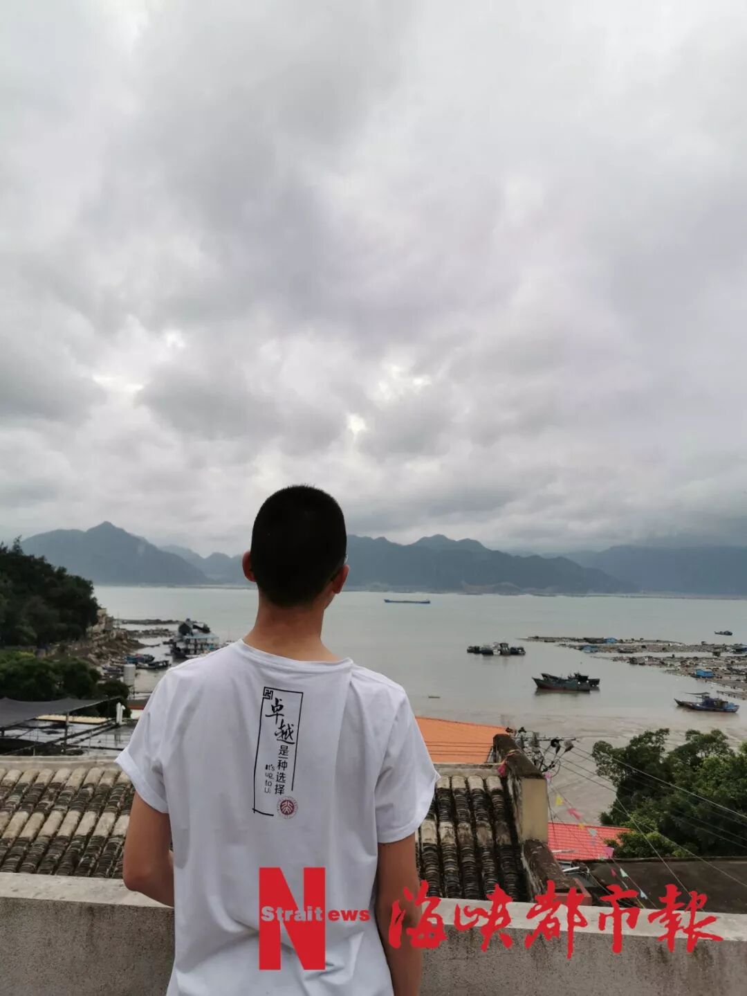 昨日记者再次联系上文英,此时姐弟俩已来到位于霞浦东冲的外婆家。他们发来的照片中,前方是一片大海,文雄站在阳台上眺望远方,他衣服上印着“卓越是一种选择”。