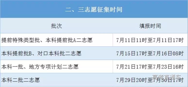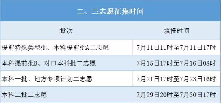 2019年河北省各批次志愿时间安排,7月份涉及到的征集批次为: