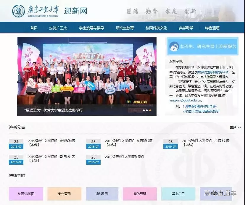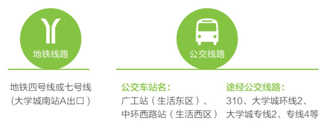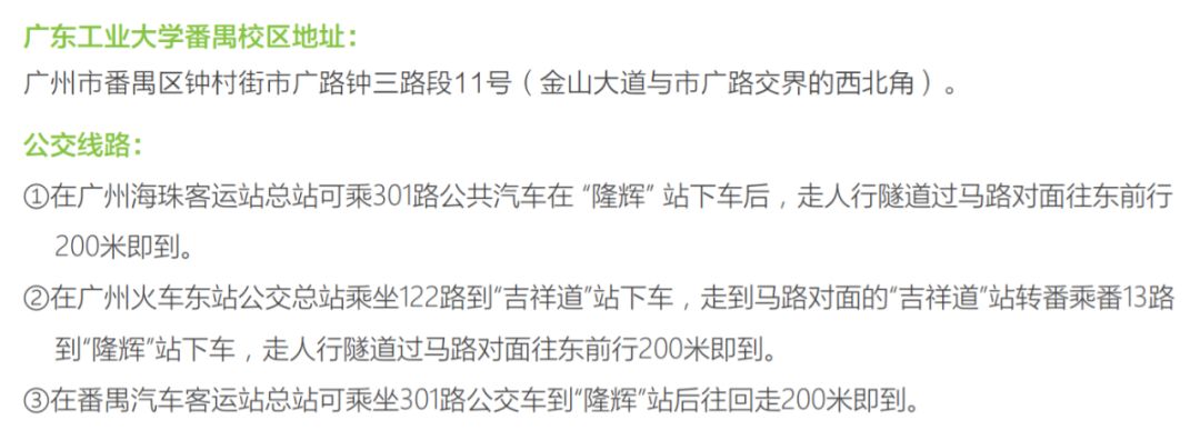 温馨提示(一) 1.医疗保险费按人社厅下达的文件要求收取;住宿费中含200元冷气设备费,若实际入住无冷气设备的宿舍,学校将按无冷气设备宿舍的收费标准退还多收款额200元;办理医保费资助: 学生凭本人的一、二级《残疾人证》或《低保证》或《低收入证》的复印件(所有证件有效期须在2019年6月30日后),以及学生户口簿首页和学生当页复印件,在学校规定的办理时间交至校医院学生医保办公室。 2.其中,东风路校区学生的住宿费按1400元的收费标准预存至金蜜蜂银行卡,扣费时按实际入住的宿舍收费标准(950元-1400元)划扣。 3.其中,番禺校区本科国际班学生因第1、2学年在广东工业大学学习期间,增加了双语教学、语言强化、专业培训等课程,除了向广东工业大学缴纳相应专业的标准学费、住宿费和代收费外,还应缴纳经广东省发展和改革委员会备案的双语教学、语言强化、专业培训等费用两年共50000元。收费标准若有更改以广东省发展和改革委员会最新核定为准。 温馨提示(二) 校外迎新接待安排 大学城校区 龙洞校区 东风路校区 番禺校区 迎新咨询热线