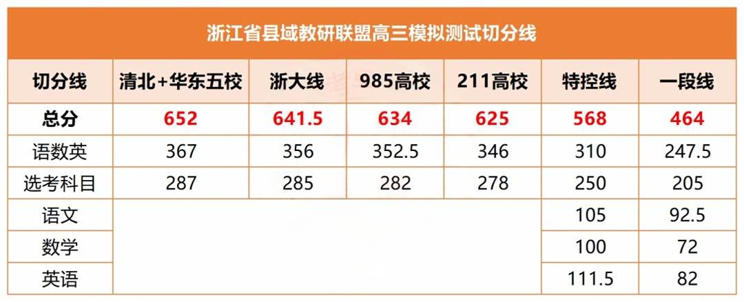 2025浙江县域教研联盟高三5月联考分数线:特控线568一段线464