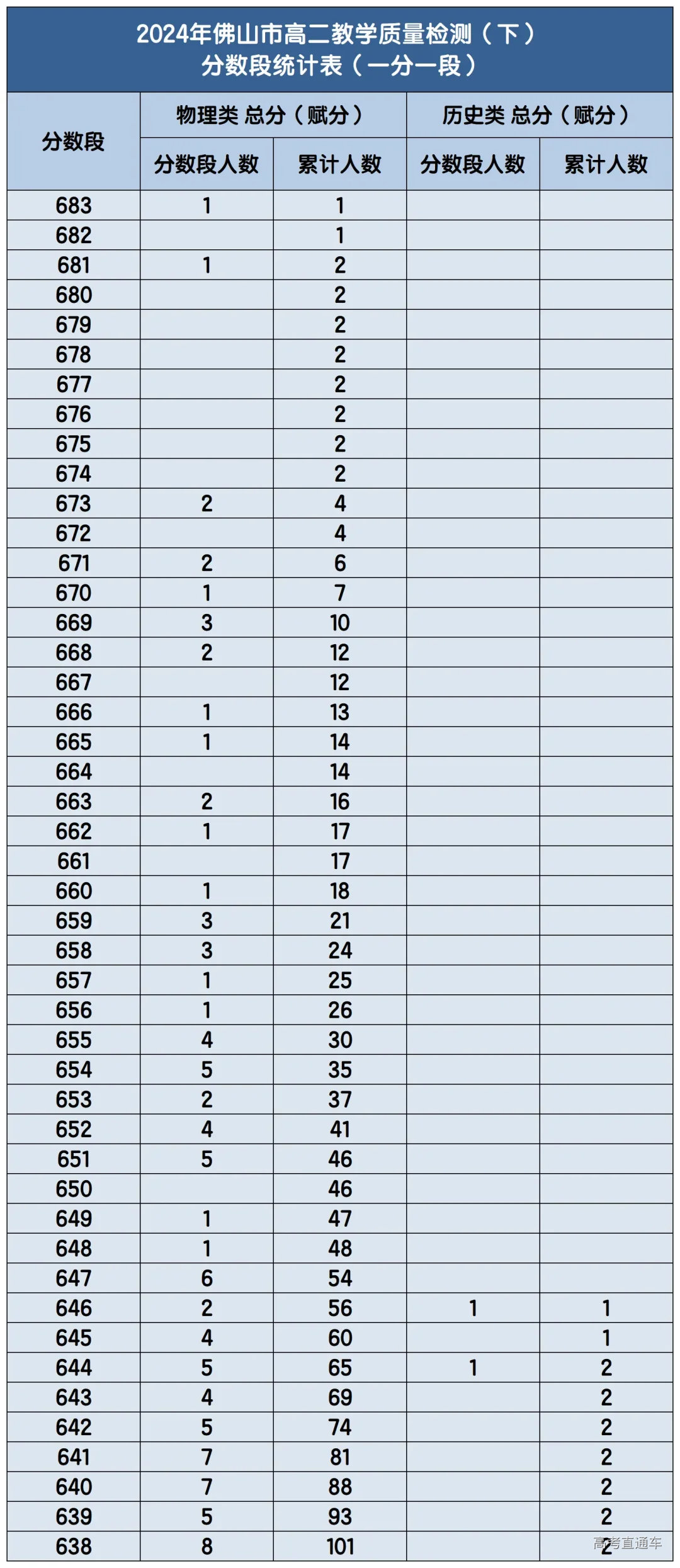 2024佛山高二7月期末统考分数线及一分一段表出炉!