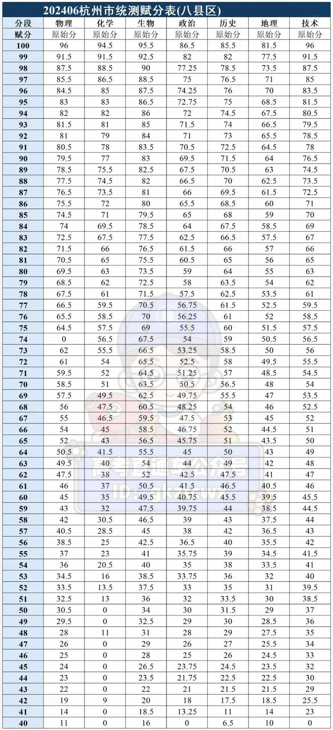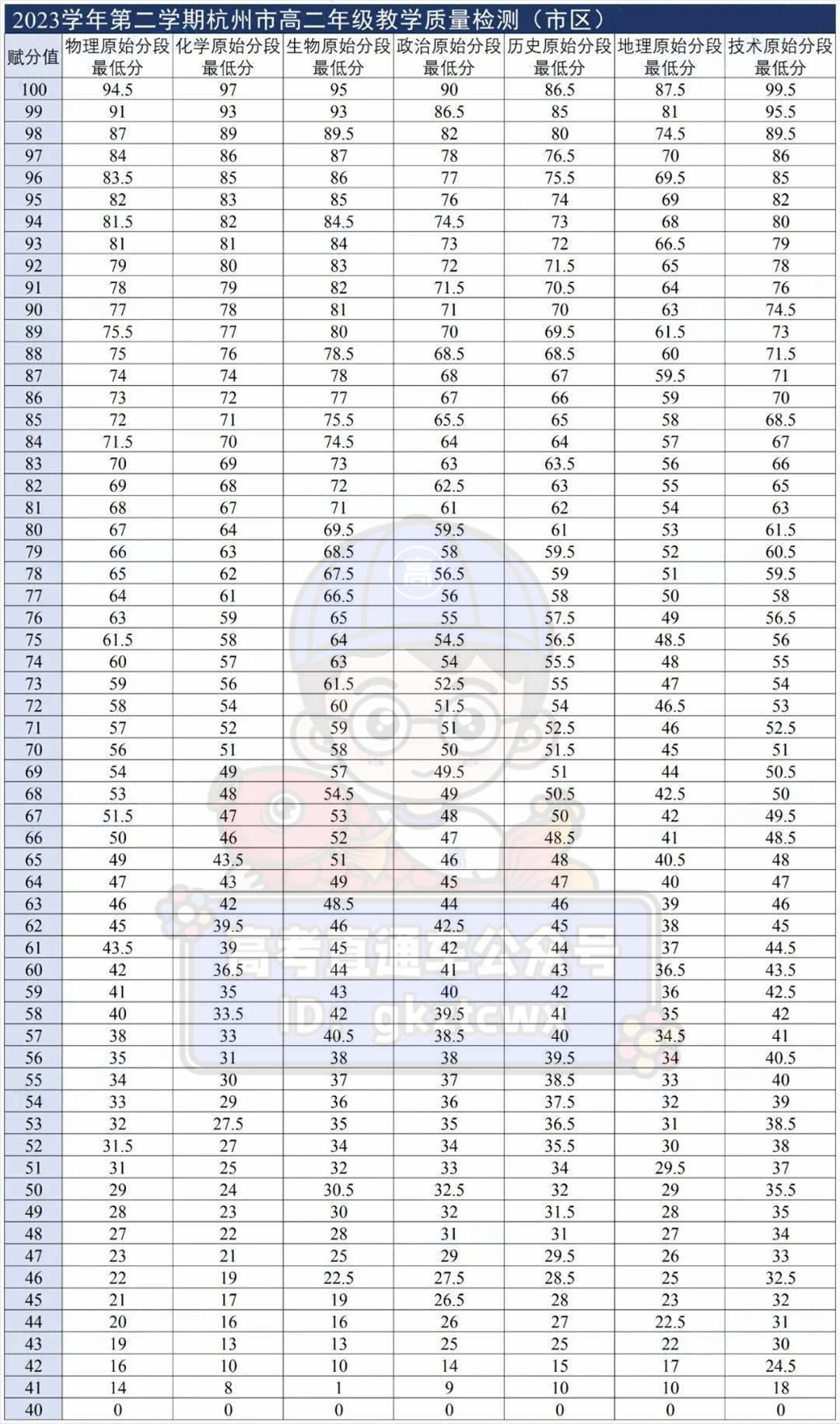 2024浙江杭州高二6月期末考赋分表出炉!