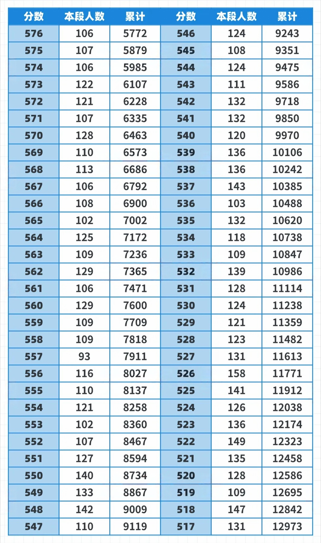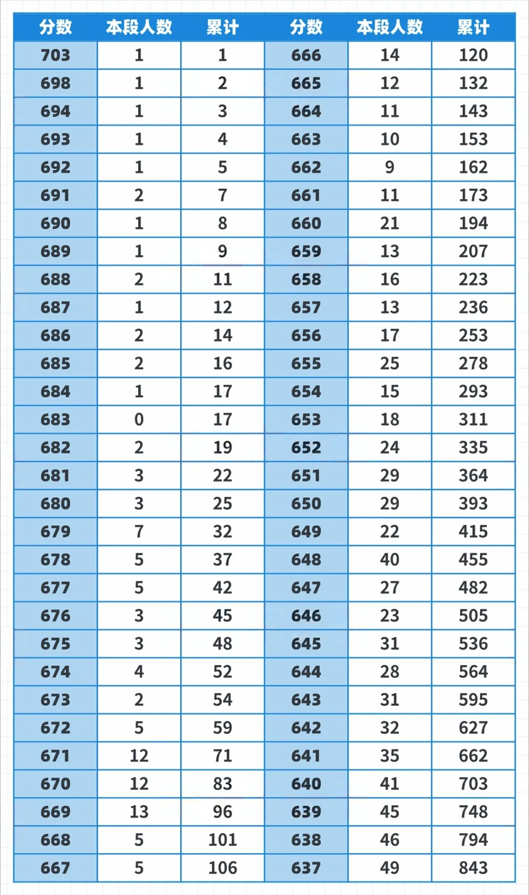 一分一段表