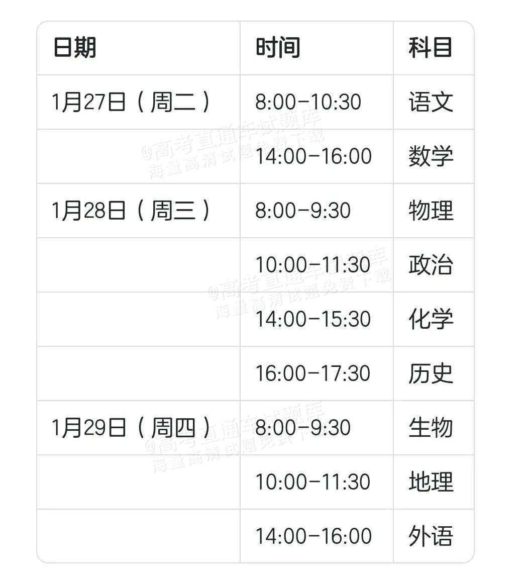 2026山东枣庄高三1月期末考考试安排