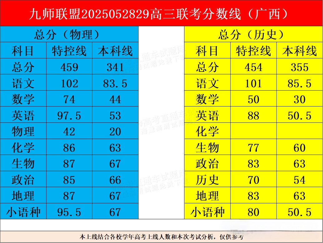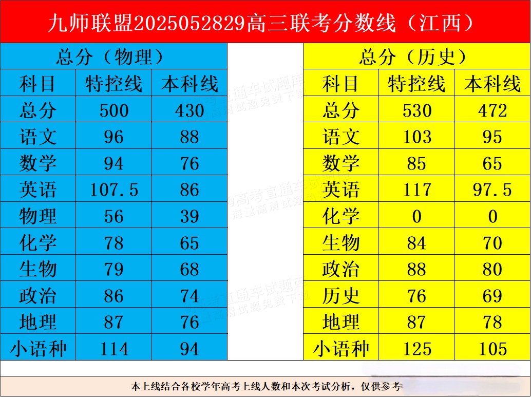 2026九师联盟高三11月联考分数线:本科物理最低310历史最低322