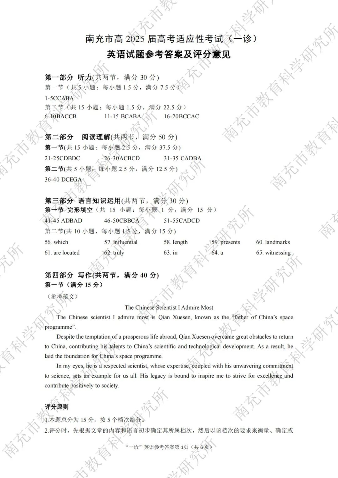 2025南充一诊英语试题及参考答案-试题详情