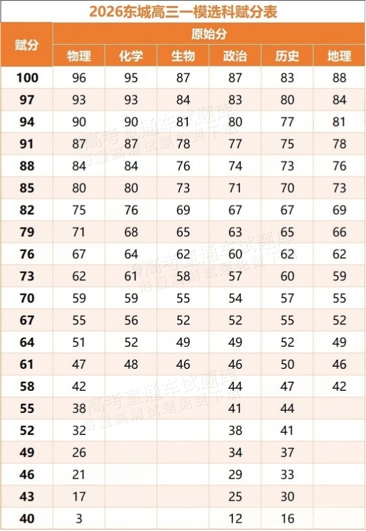2026北京东城区高三一模赋分表公布