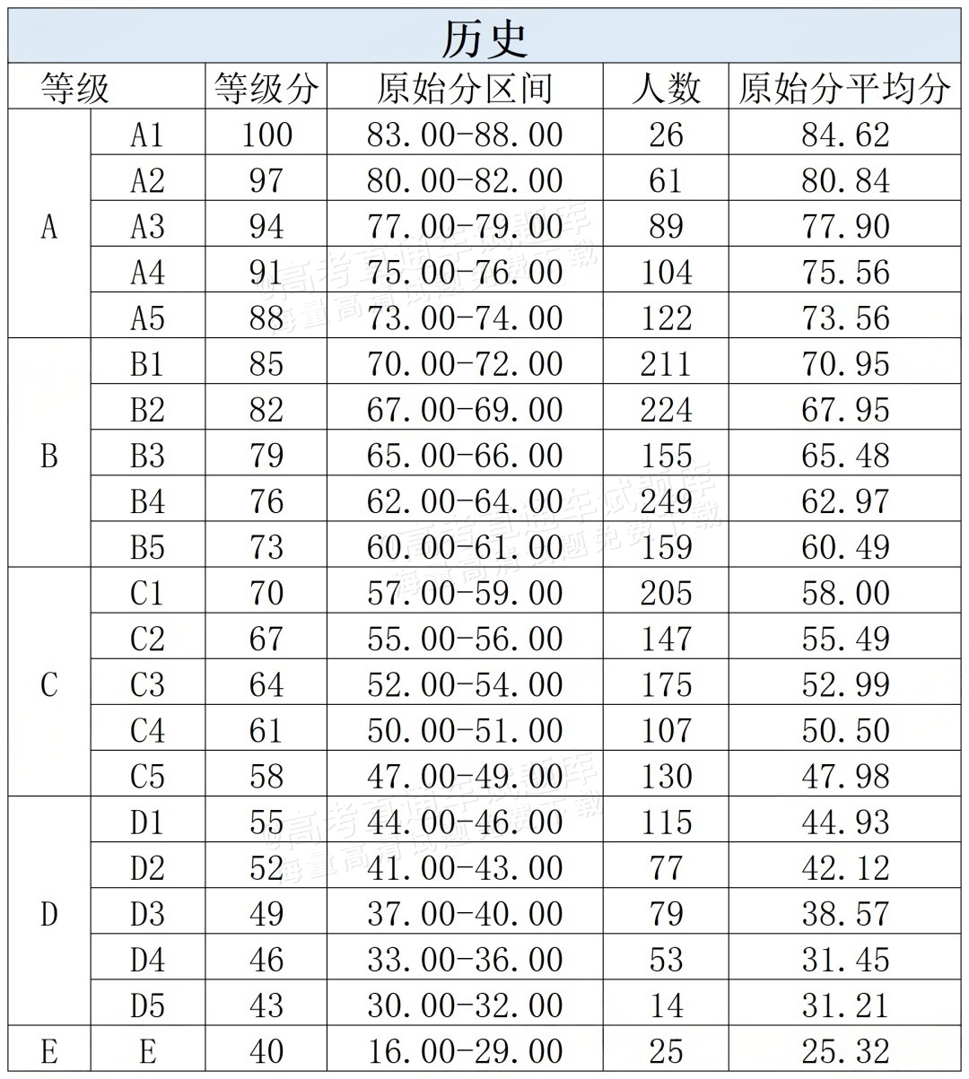 赋分表