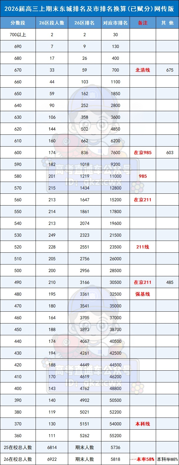 2026北京东城区高三上期末考分数线出炉:一本线478本科线386