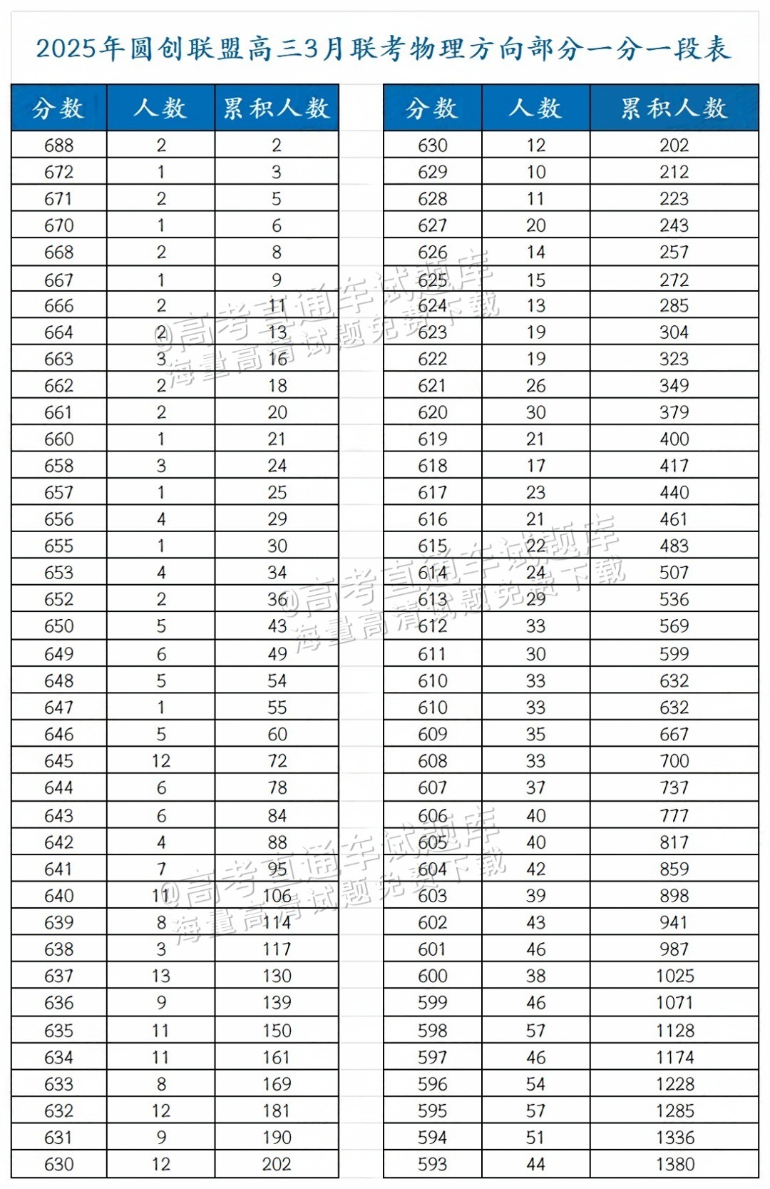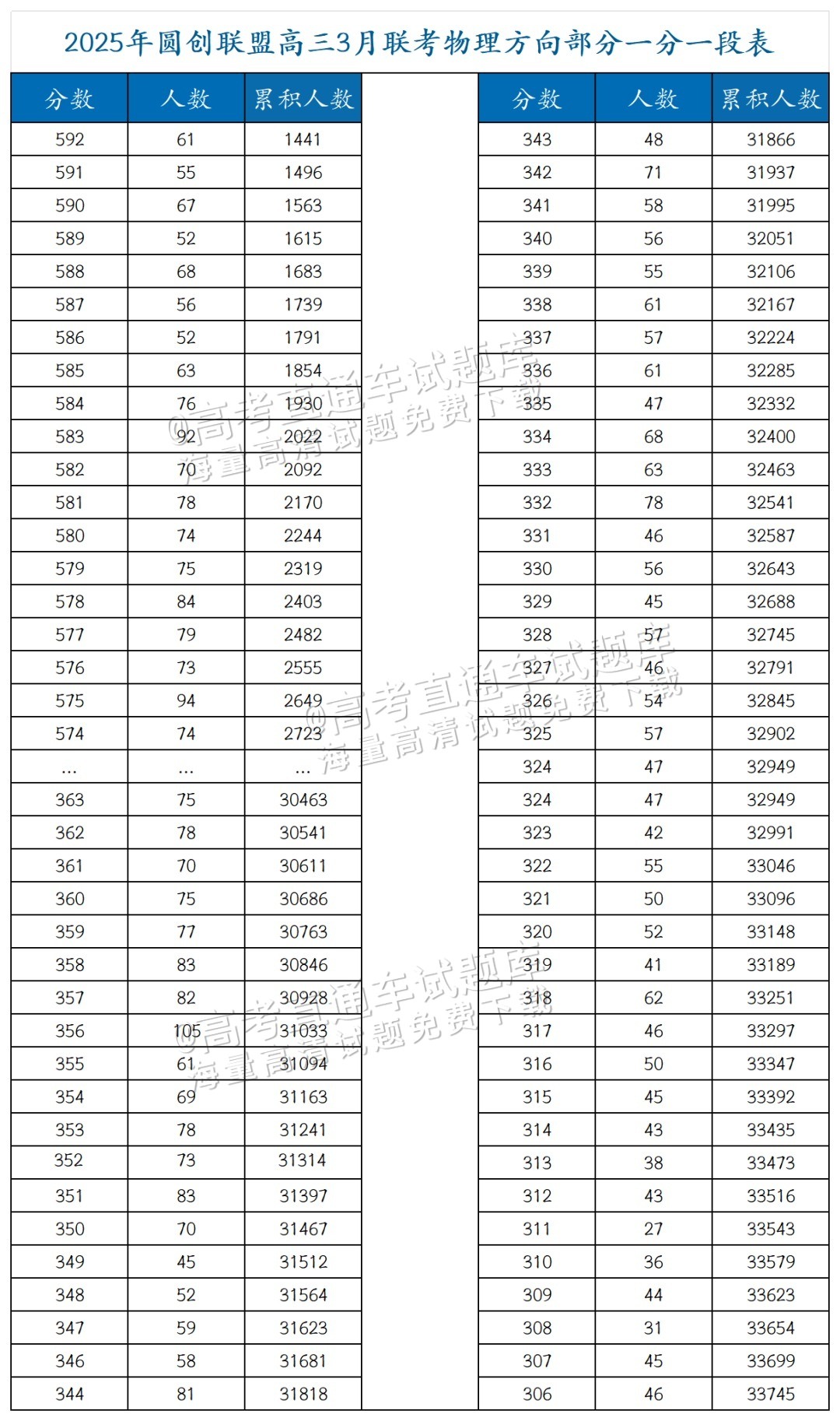 2025湖北圆创联盟高三3月联考分数线:本科物理404历史408.5