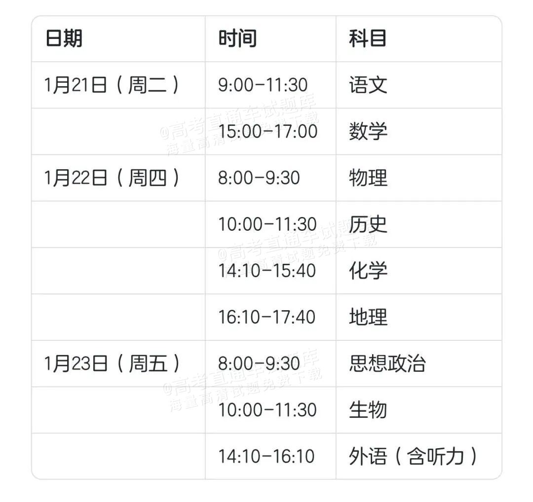 2026山东淄博高三1月期末考考试安排