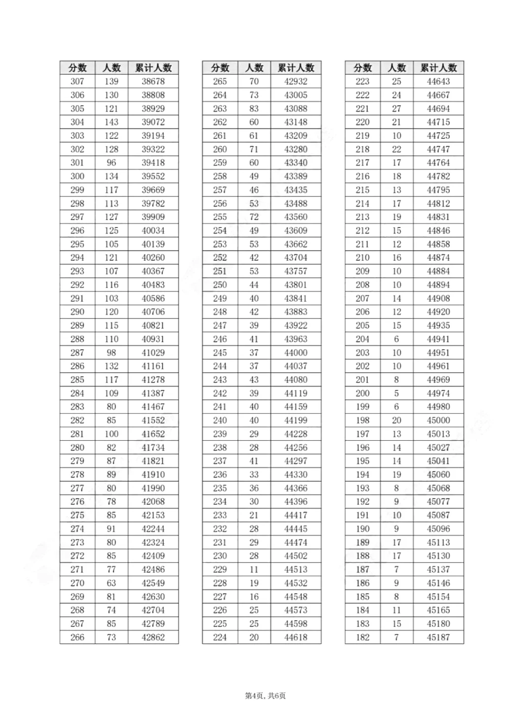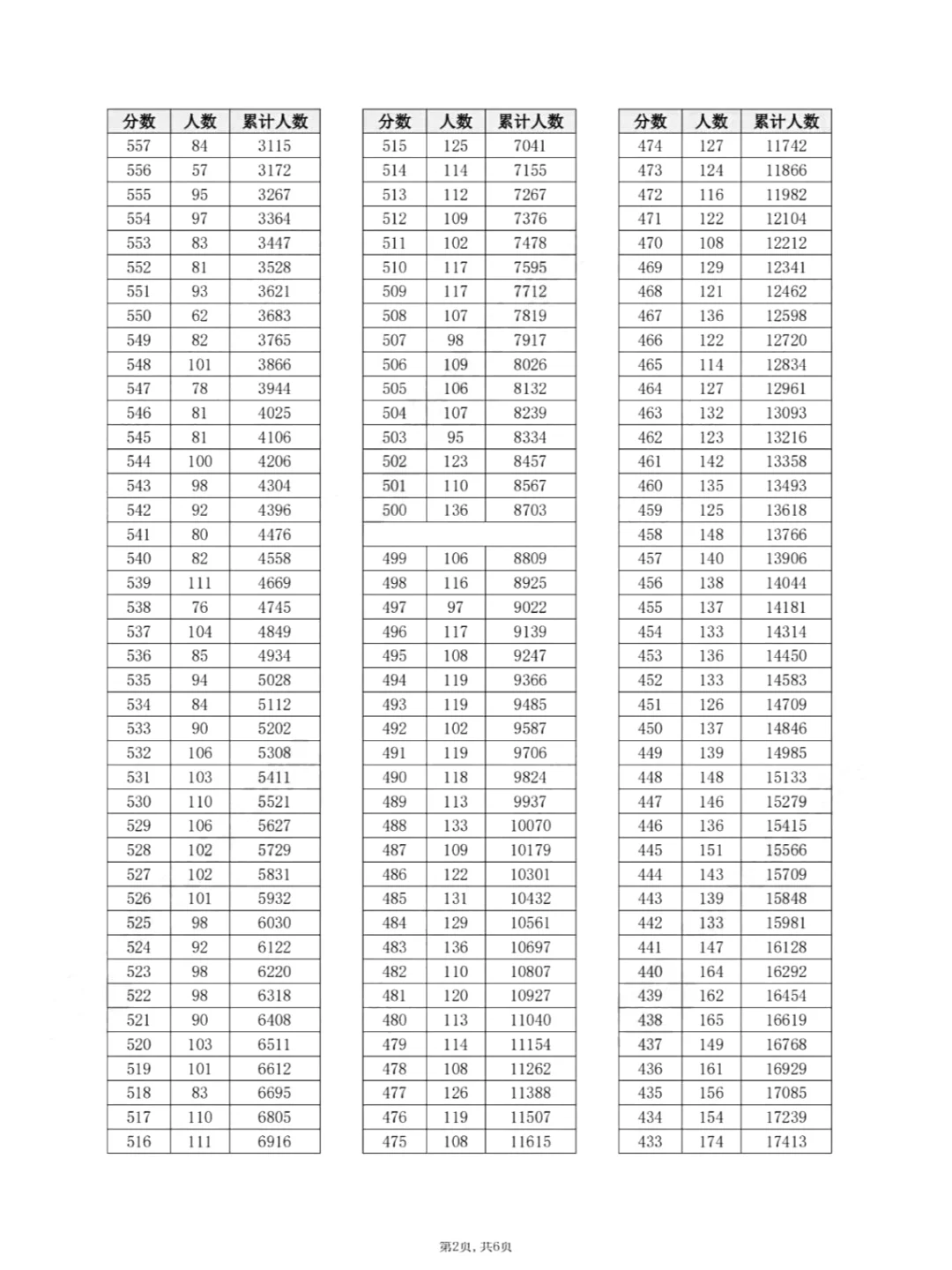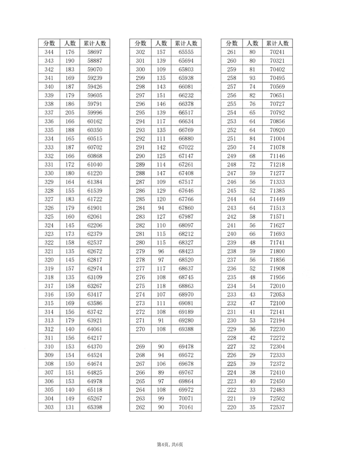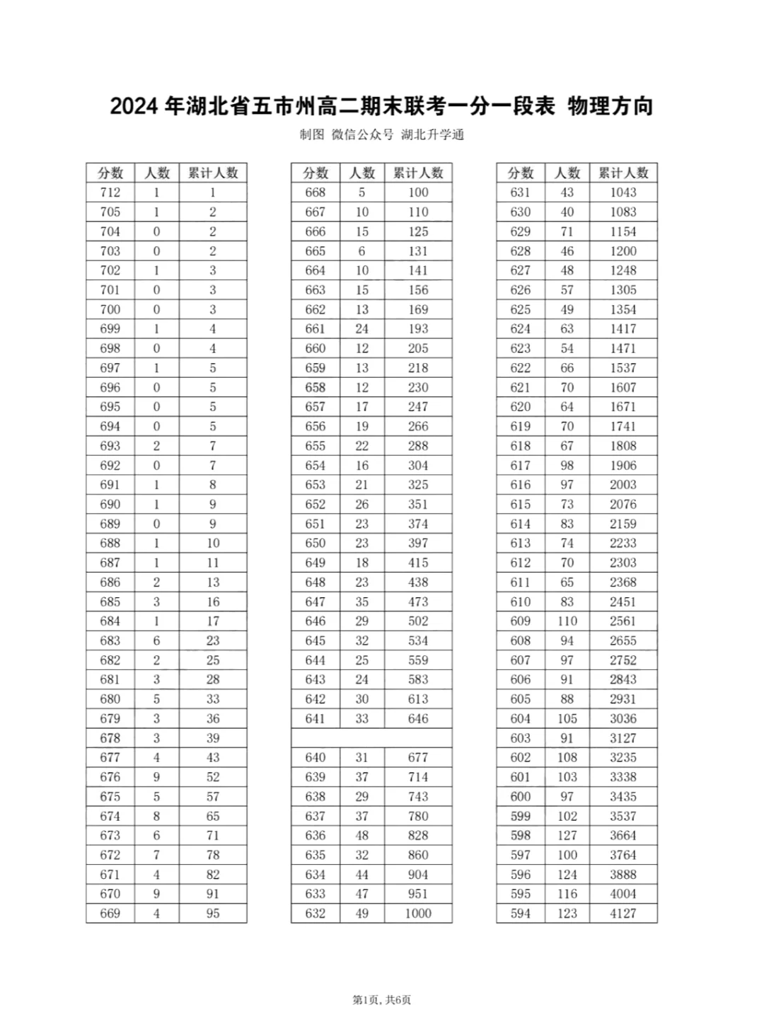物理类一分一段表