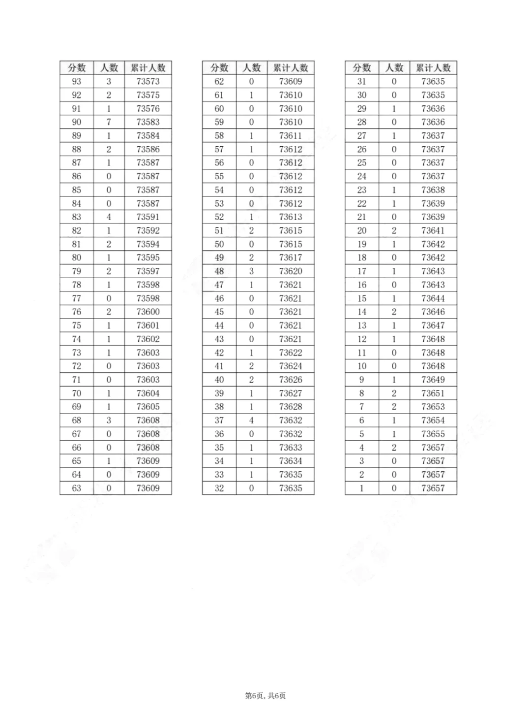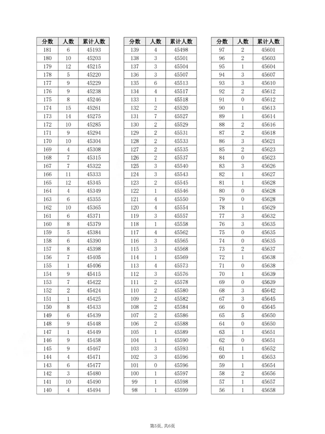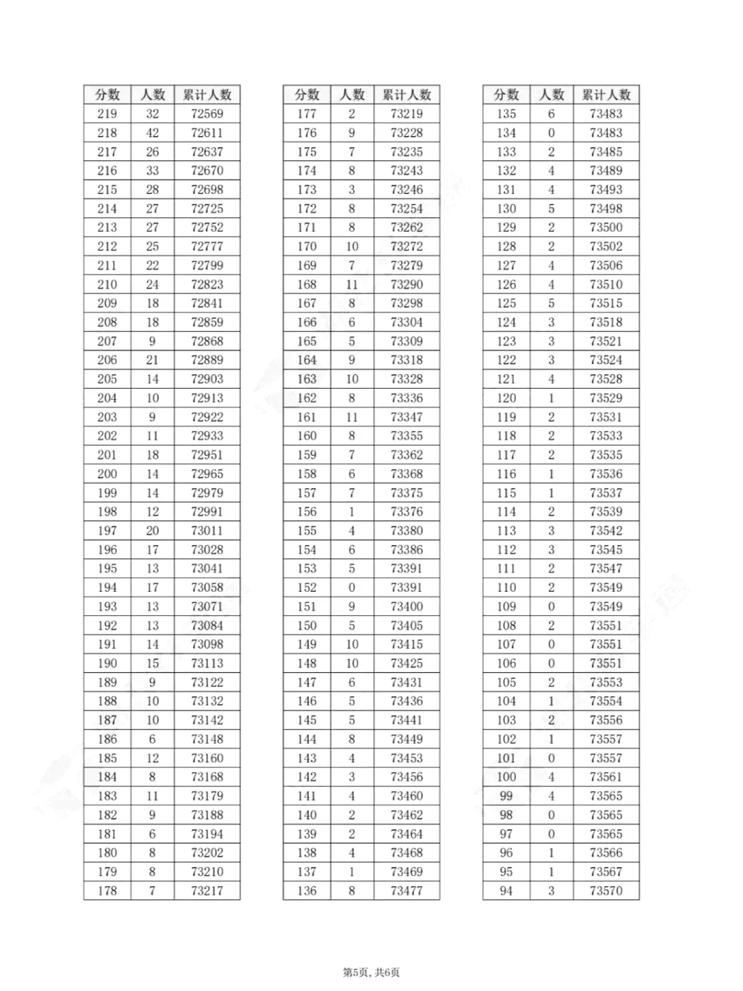 物理类一分一段表