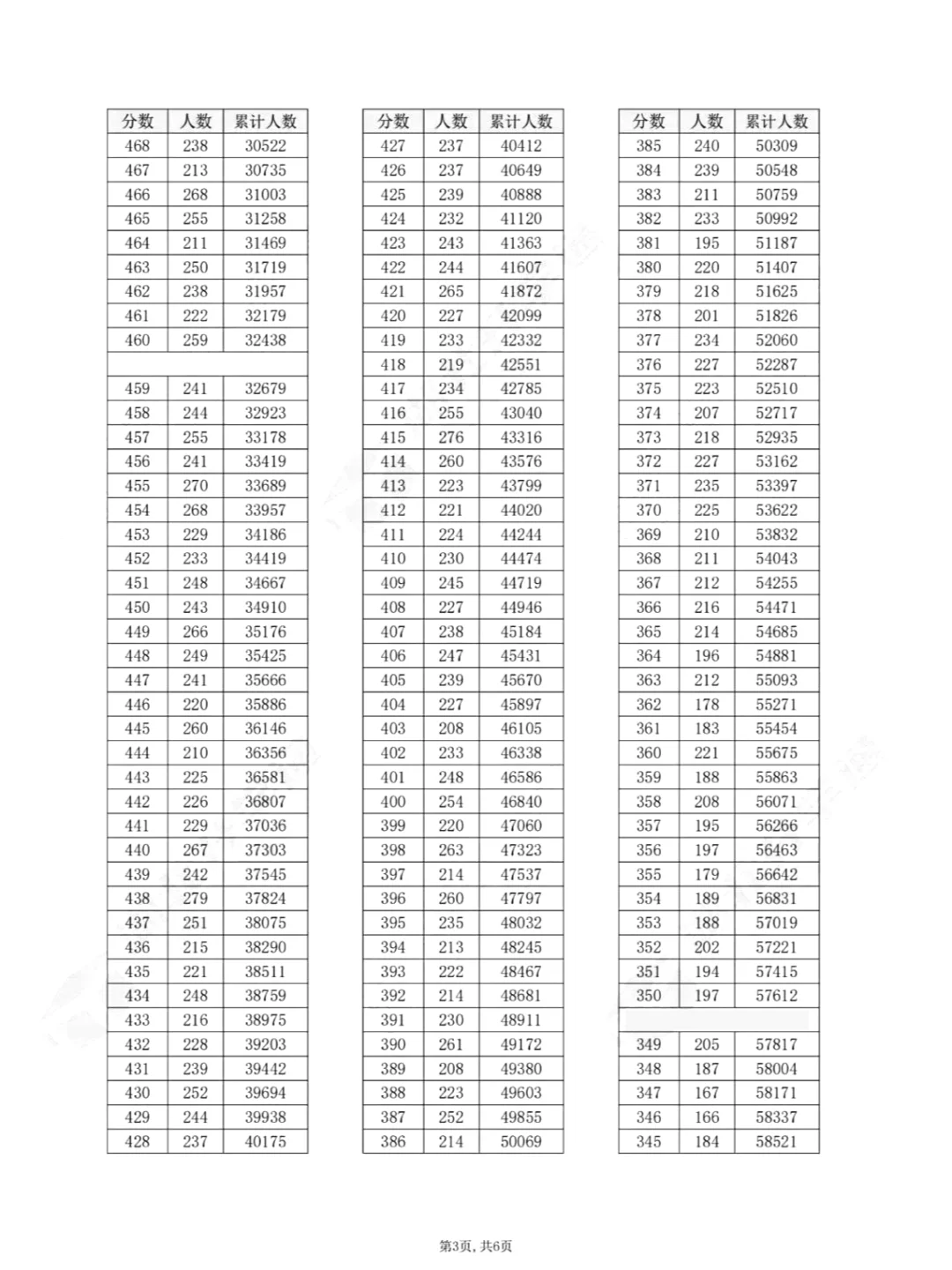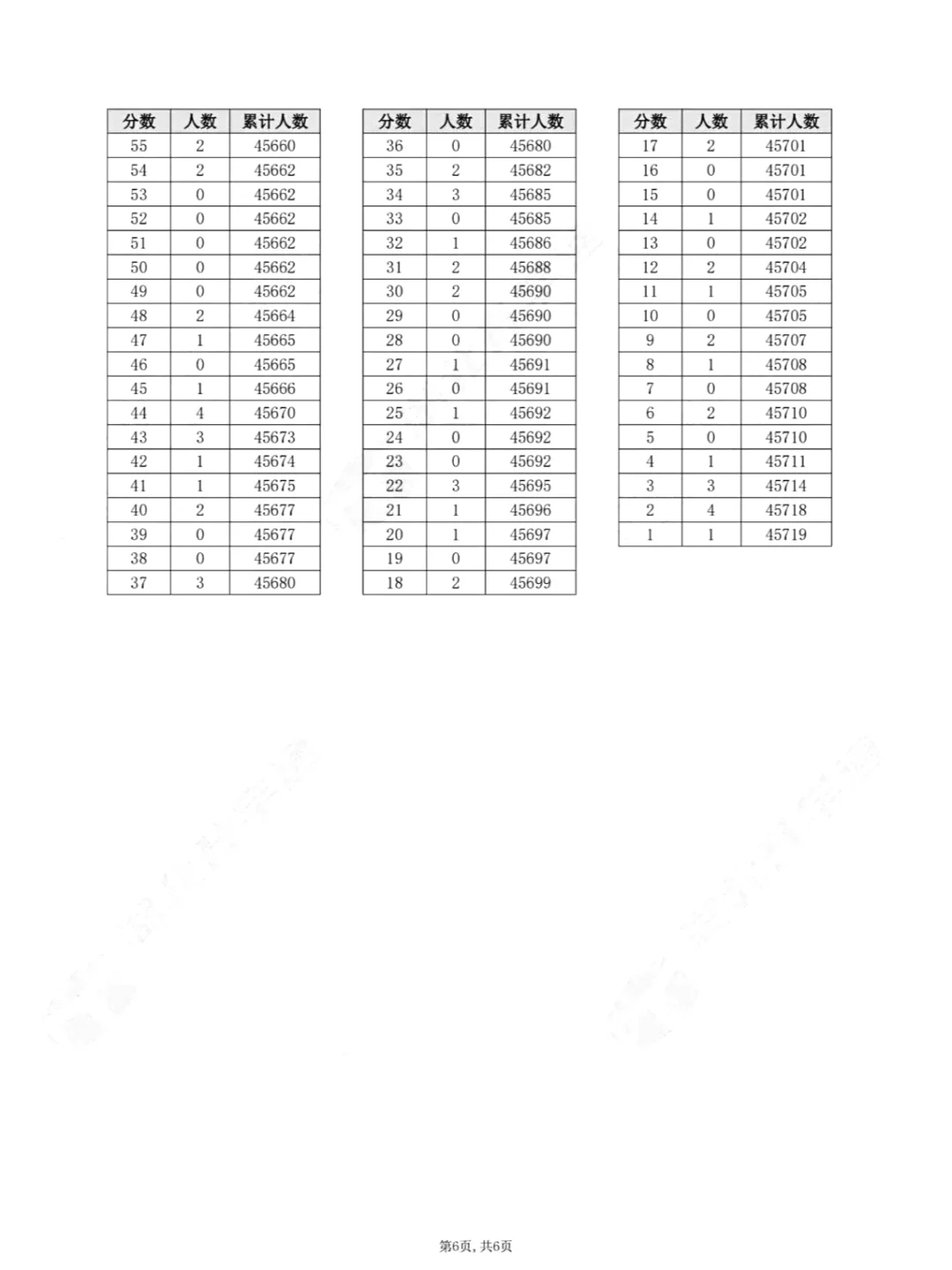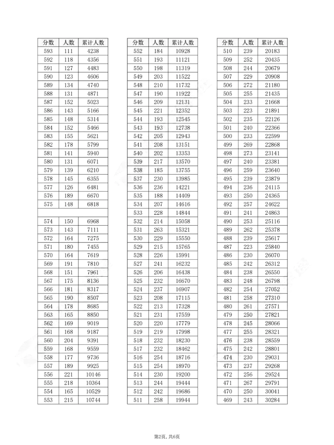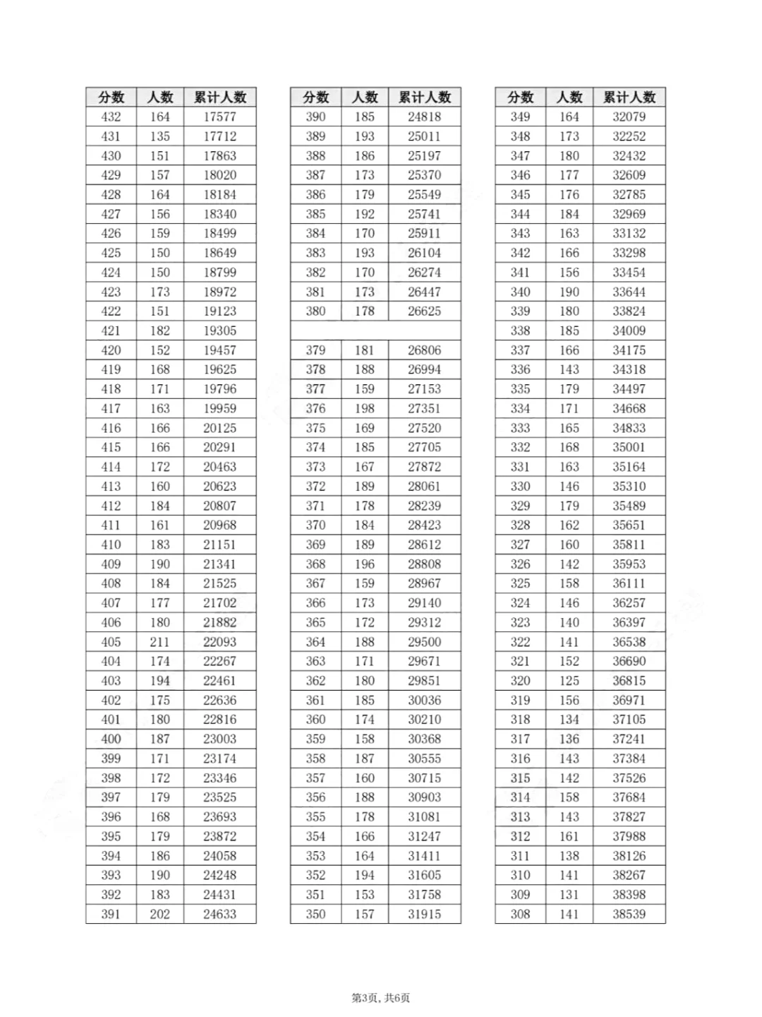 物理类一分一段表