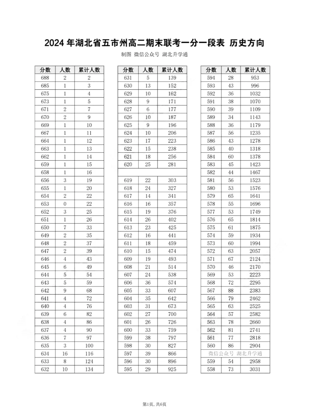 历史一分一段表